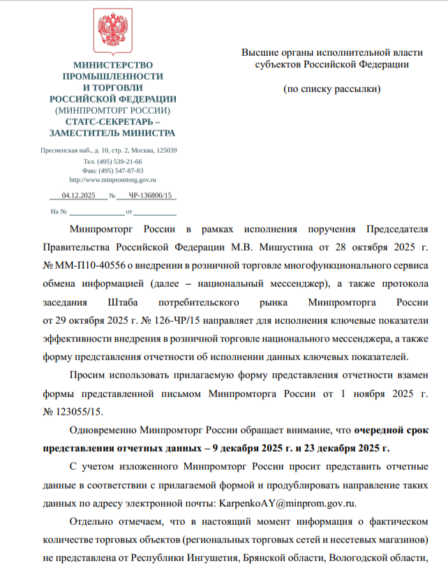 | О внедрении в розничную торговлю многофункционального сервиса обмена информацией | Скачать |