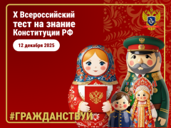 Всероссийское общественное движение «Гражданин» 12 декабря 2025 года приглашает всех желающих старше 12 лет принять участие в Акции «Всероссийский тест на знание Конституции РФ».