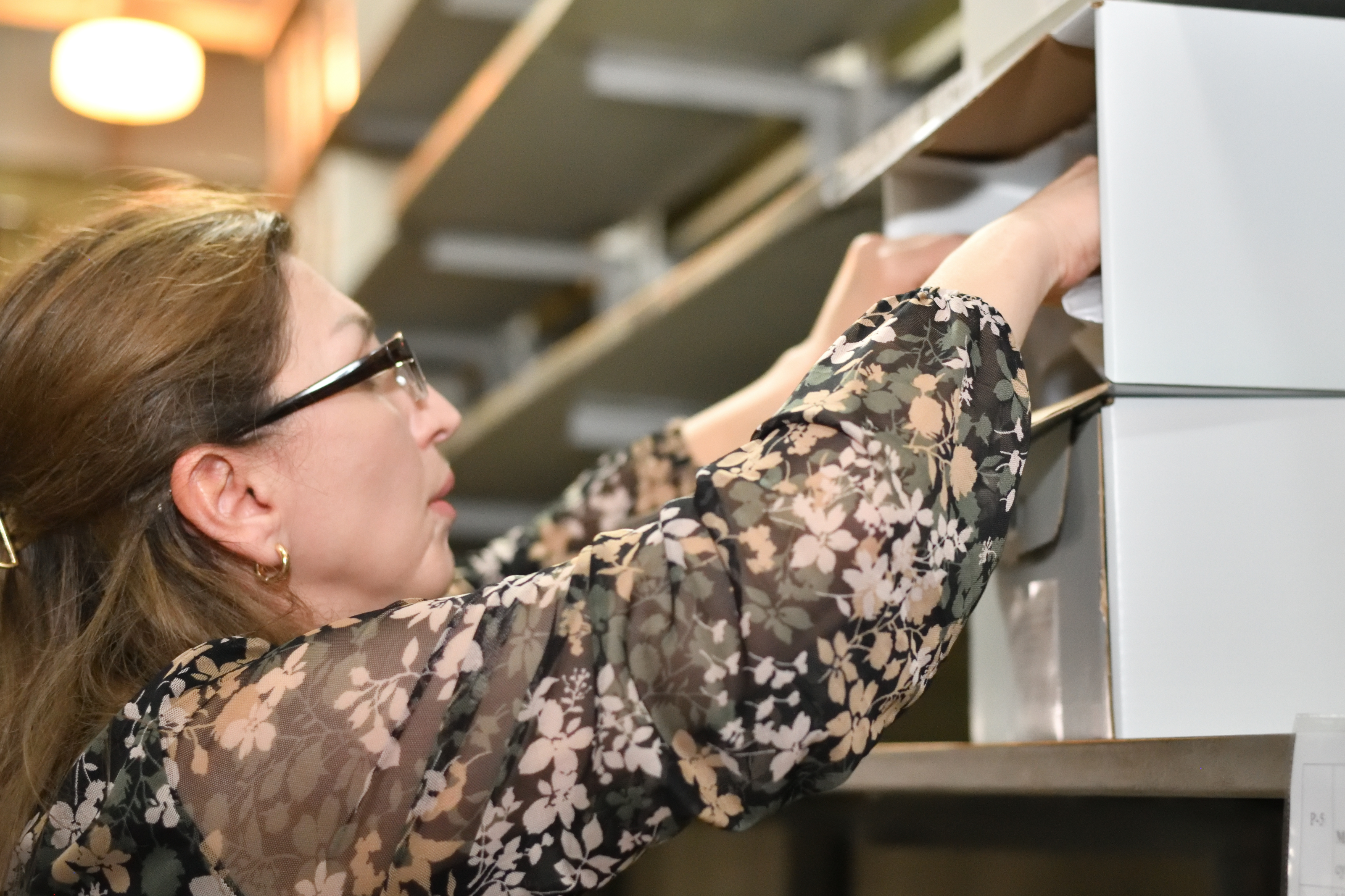 Начальник отдела Саида Юсуфовна Ашинова провела для Сергея Антоновича небольшую экскурсию по хранилищам архива и подробно рассказала о нюансах архивной работы.
