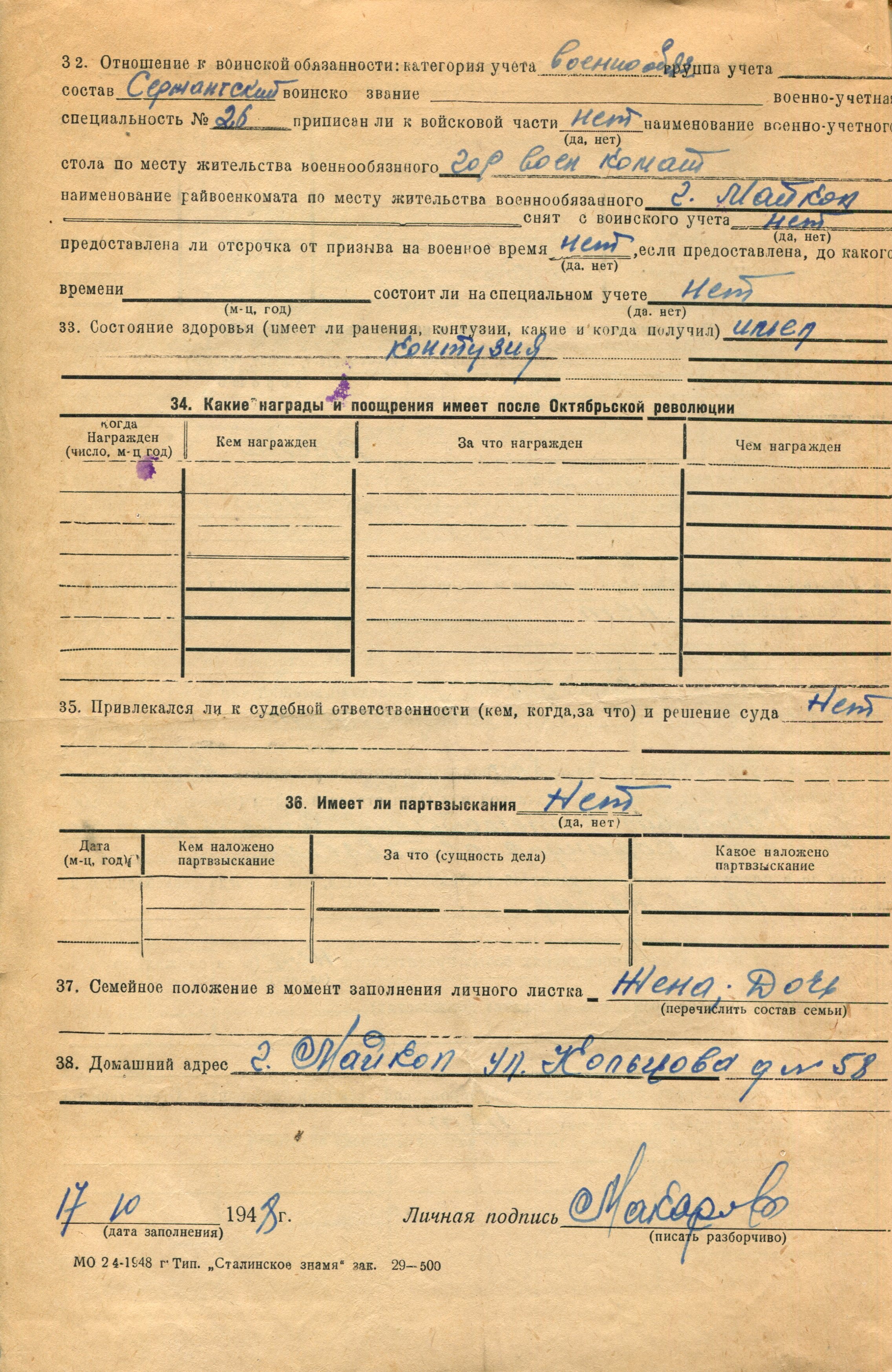 Макаров А.Д. Личный листок 2 (Ф. 324, Оп. 1-л, д. 27, л. 12)