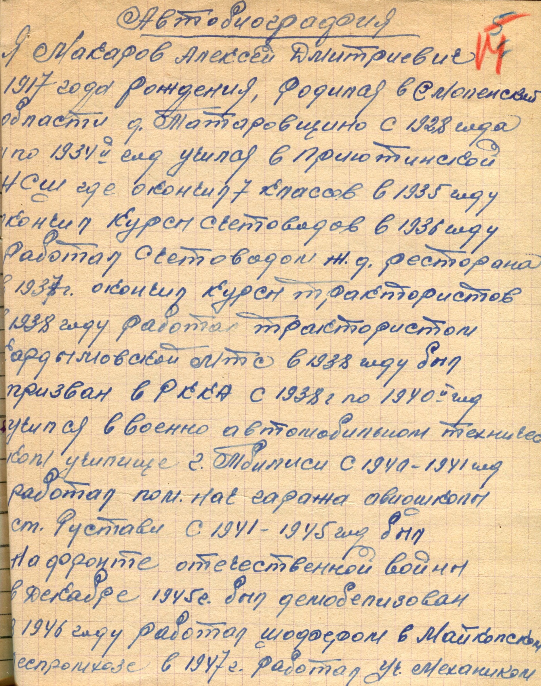 Макаров А.Д. Автобиография 1 (Ф. 324, Оп. 1-л, д. 27, л. 14)