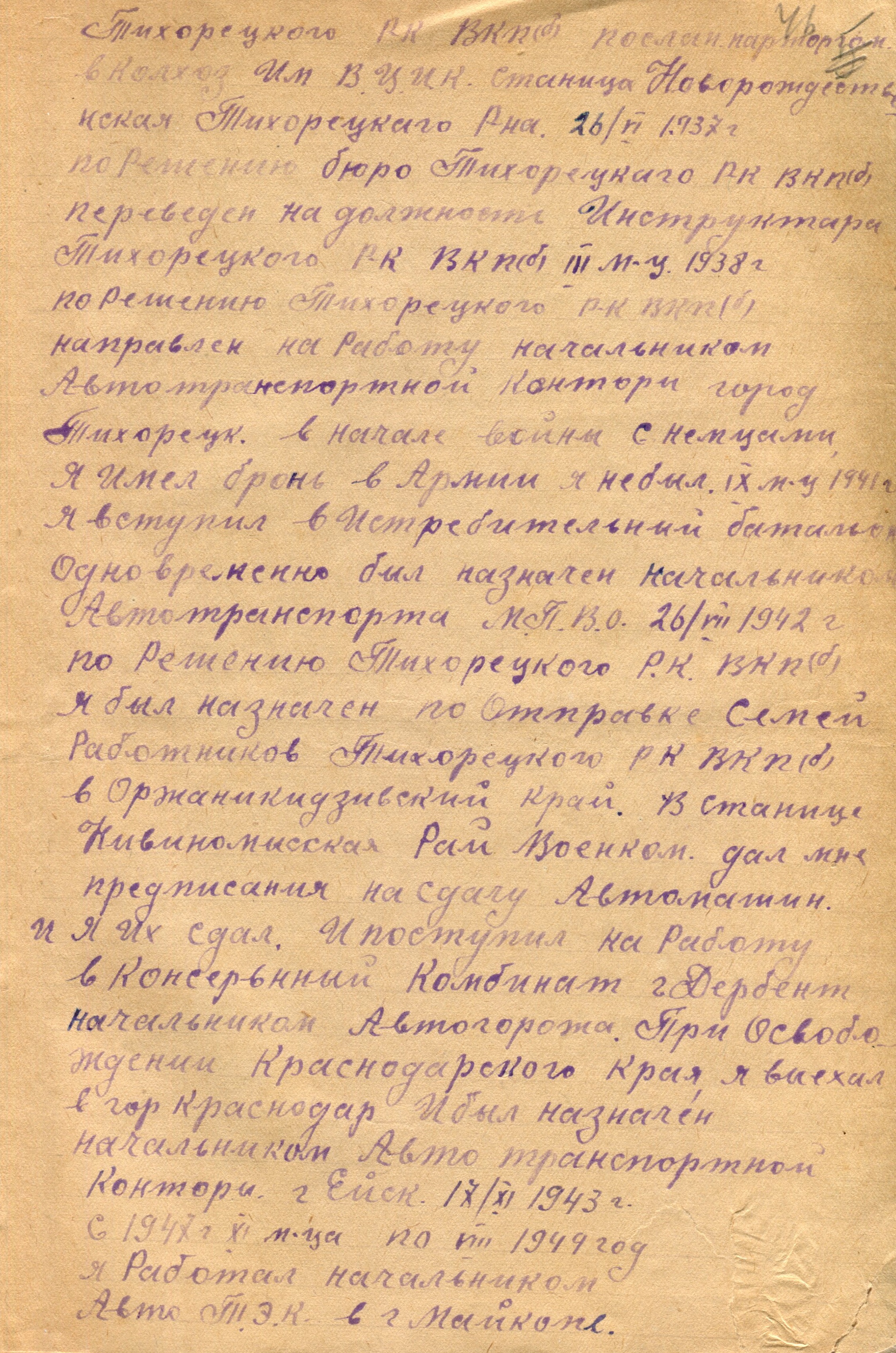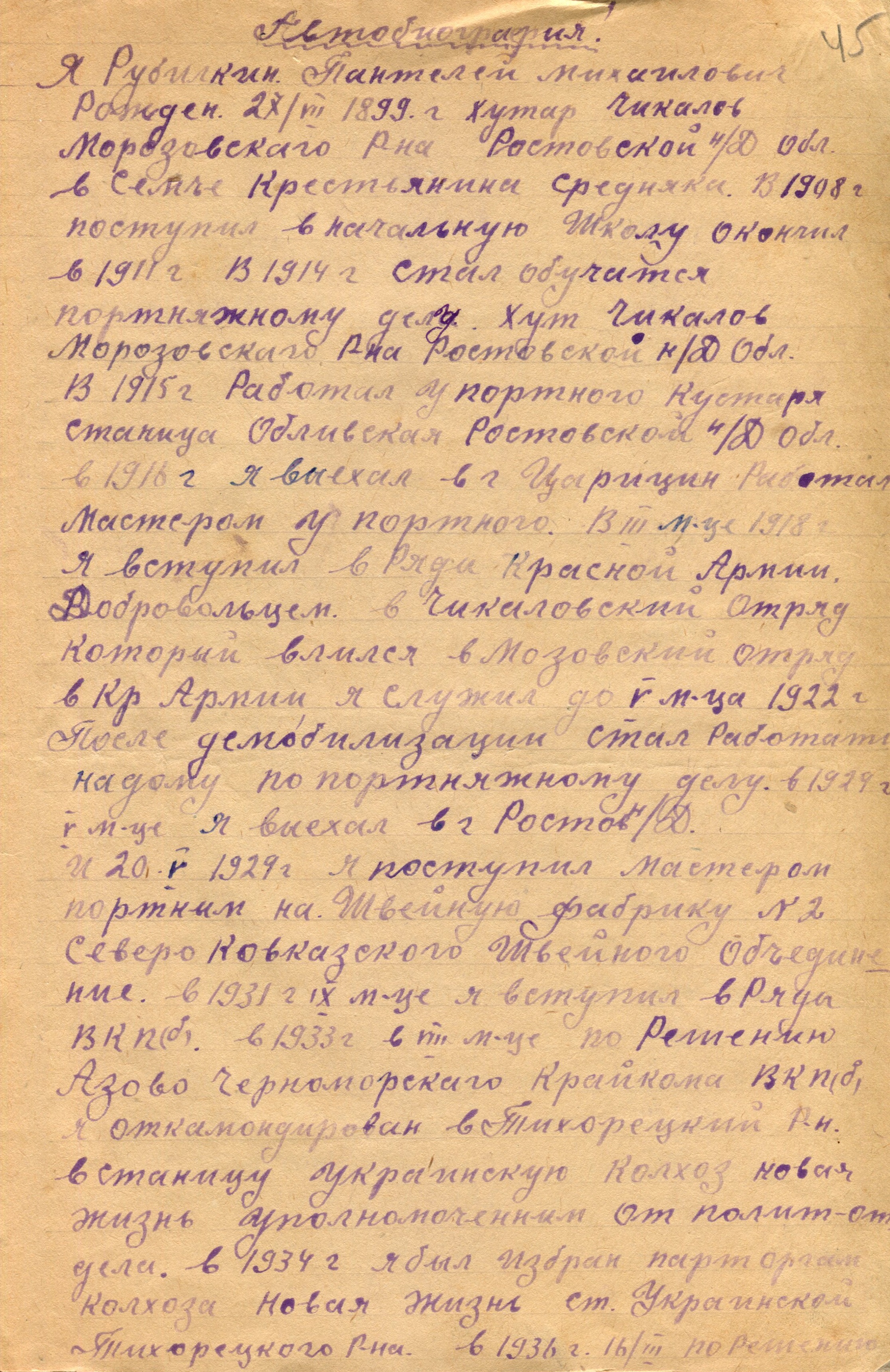 Рубилкин П.М. Автобиография 2 (Ф. 324, Оп. 1-л, д. 24, л. 43, л. 45)