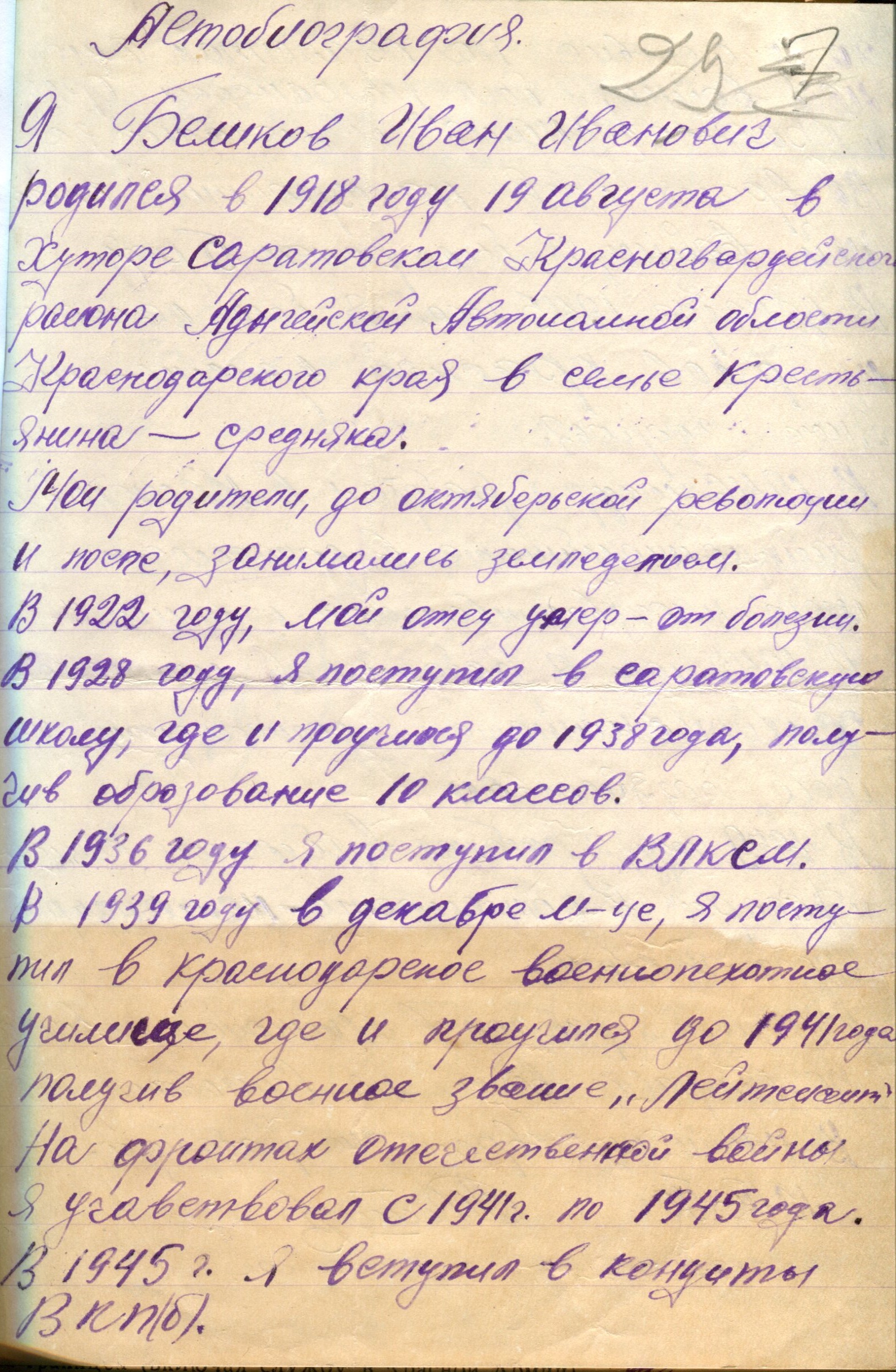 Беликов И.И. Автобиография 1 (Ф. 312, Оп. 2-л, д. 13, л.л. 29)