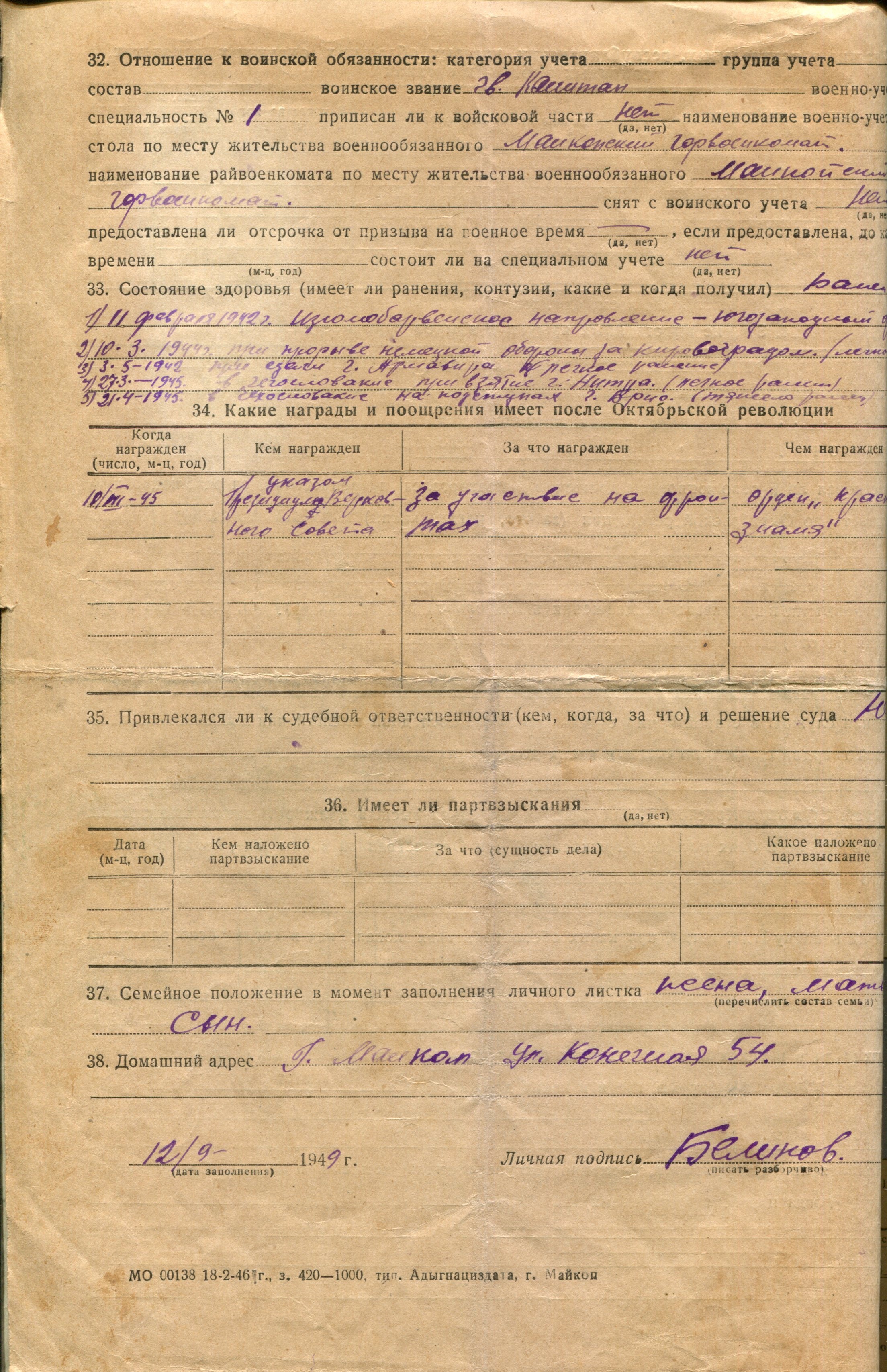 Беликов И.И. Личный листок 4 (Ф. 312, Оп. 2-л, д. 13, л.л. 32)