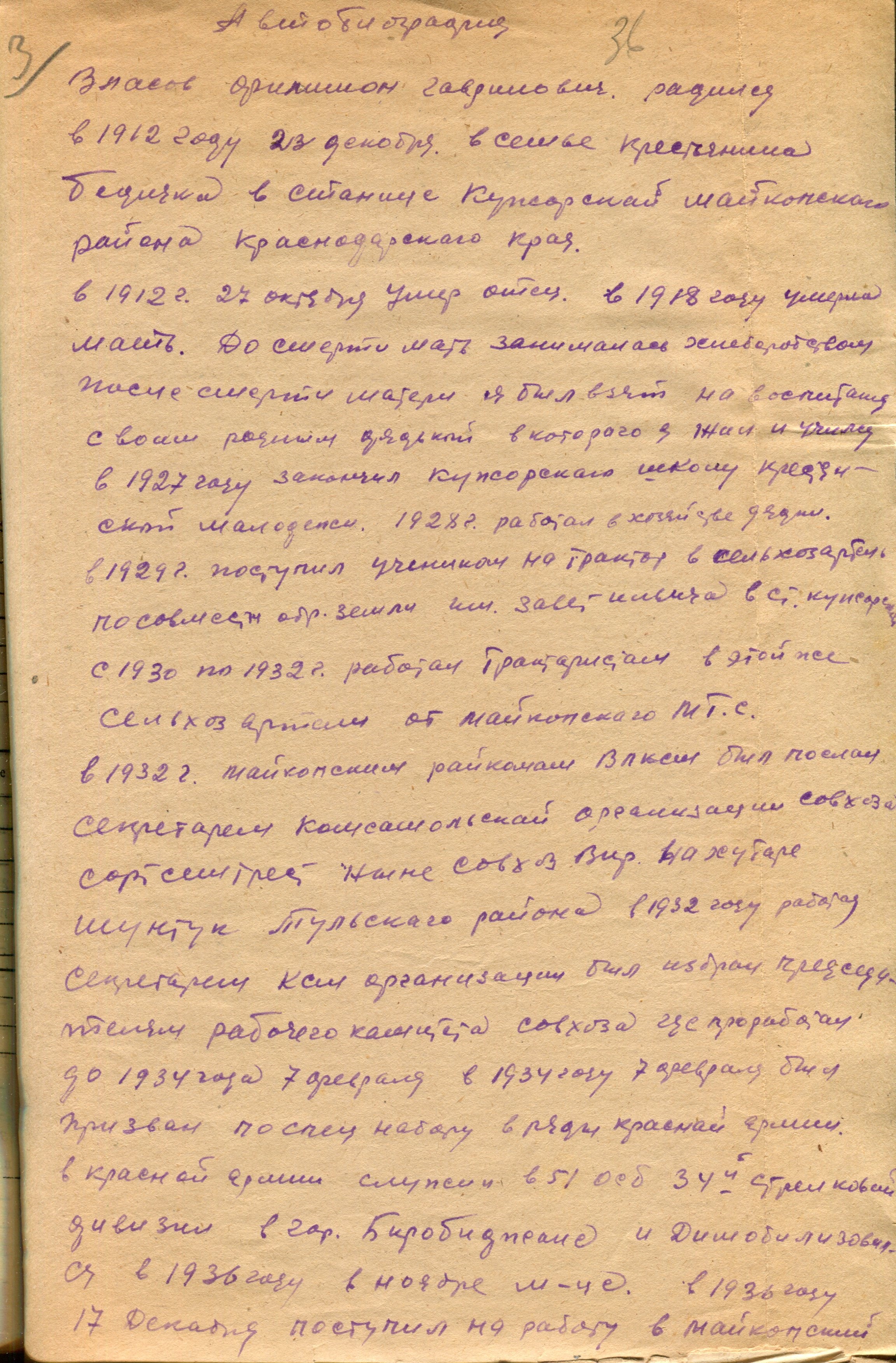 Власов Ф.Г. Автобиография 1 (Ф. 312, Оп. 2-л, д. 14, л.л. 36)