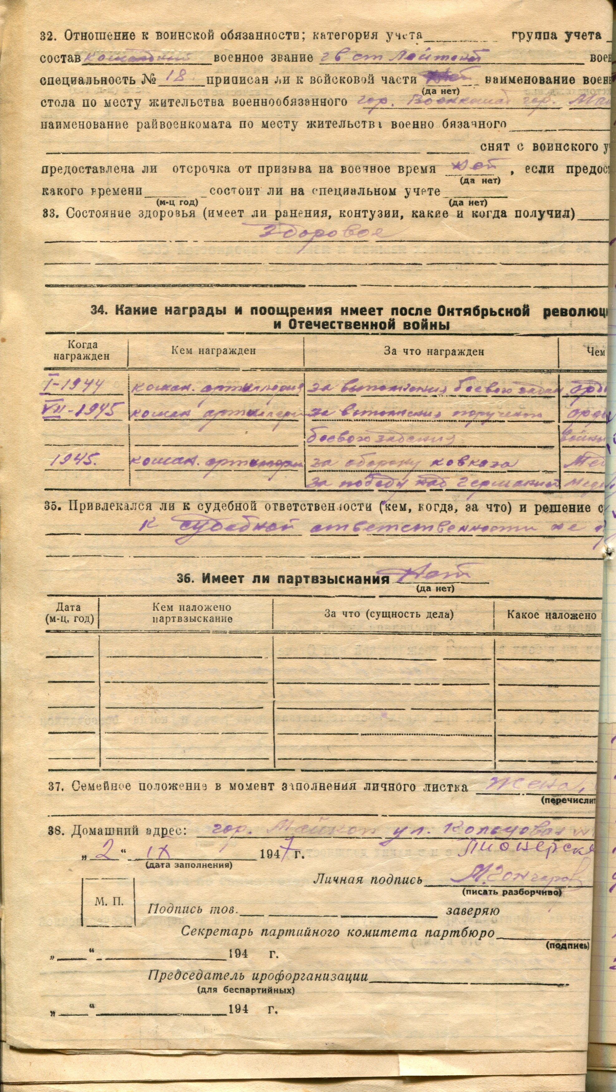 Гончаров М.С. Личный листок 2 (Ф. 312, Оп. 2-л, д. 15, л.л. 11)
