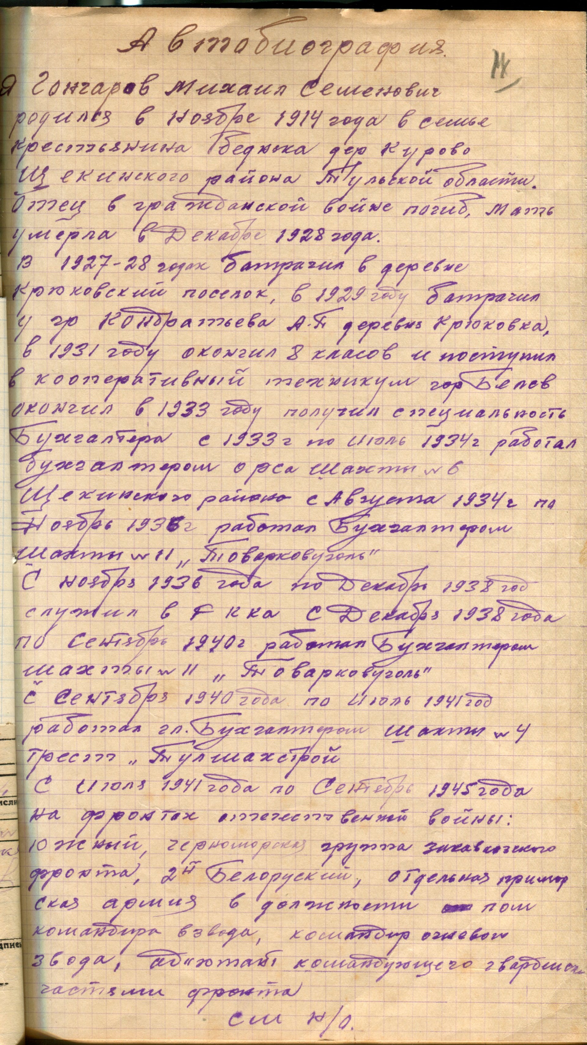 Гончаров М.С. Автобиография 1 (Ф. 312, Оп. 2-л, д. 15, л.л. 18)