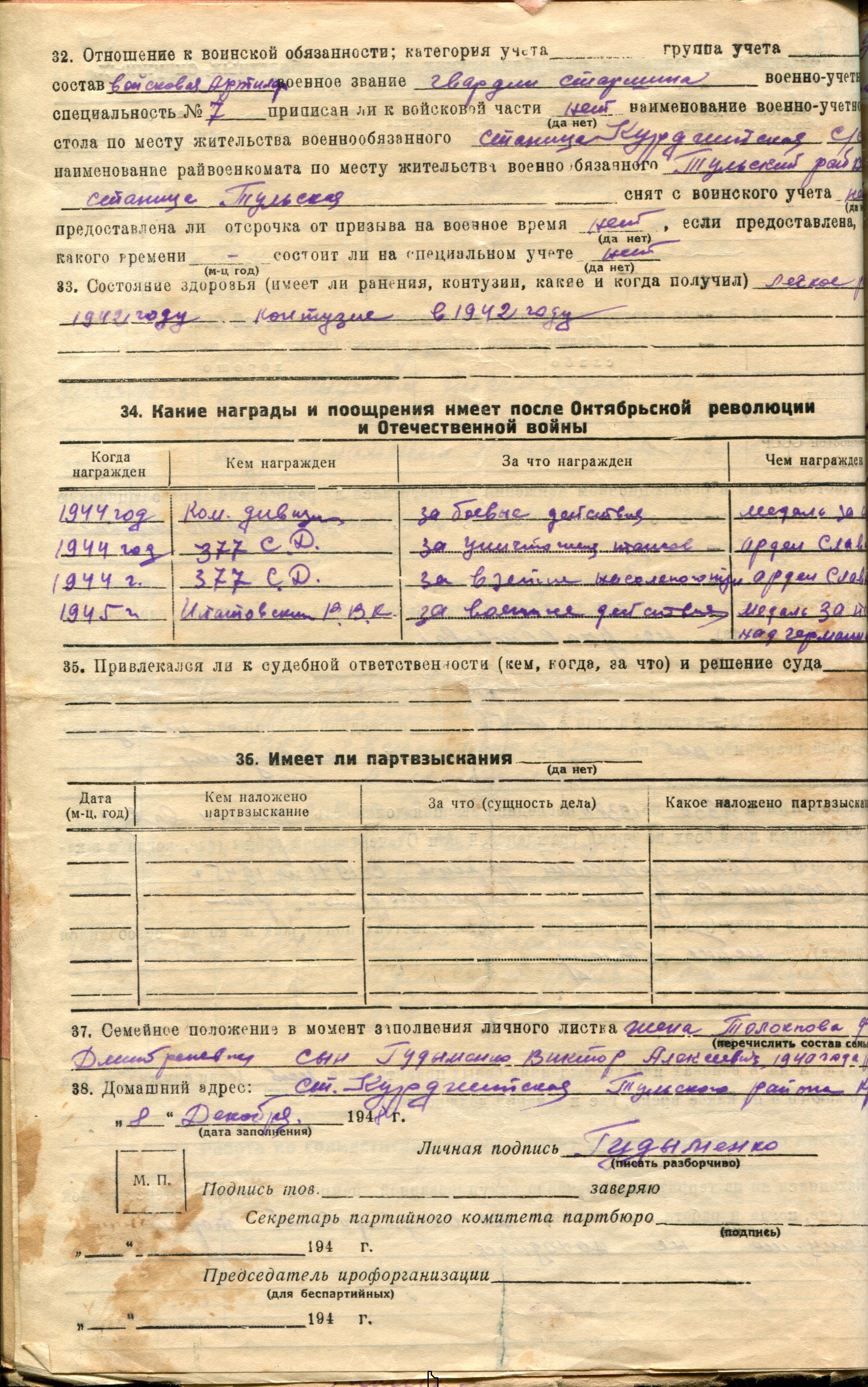 Гудыменко А.Т. Личный листок 2 (Ф. 312, Оп. 2-л, д. 14, л.л. 50)
