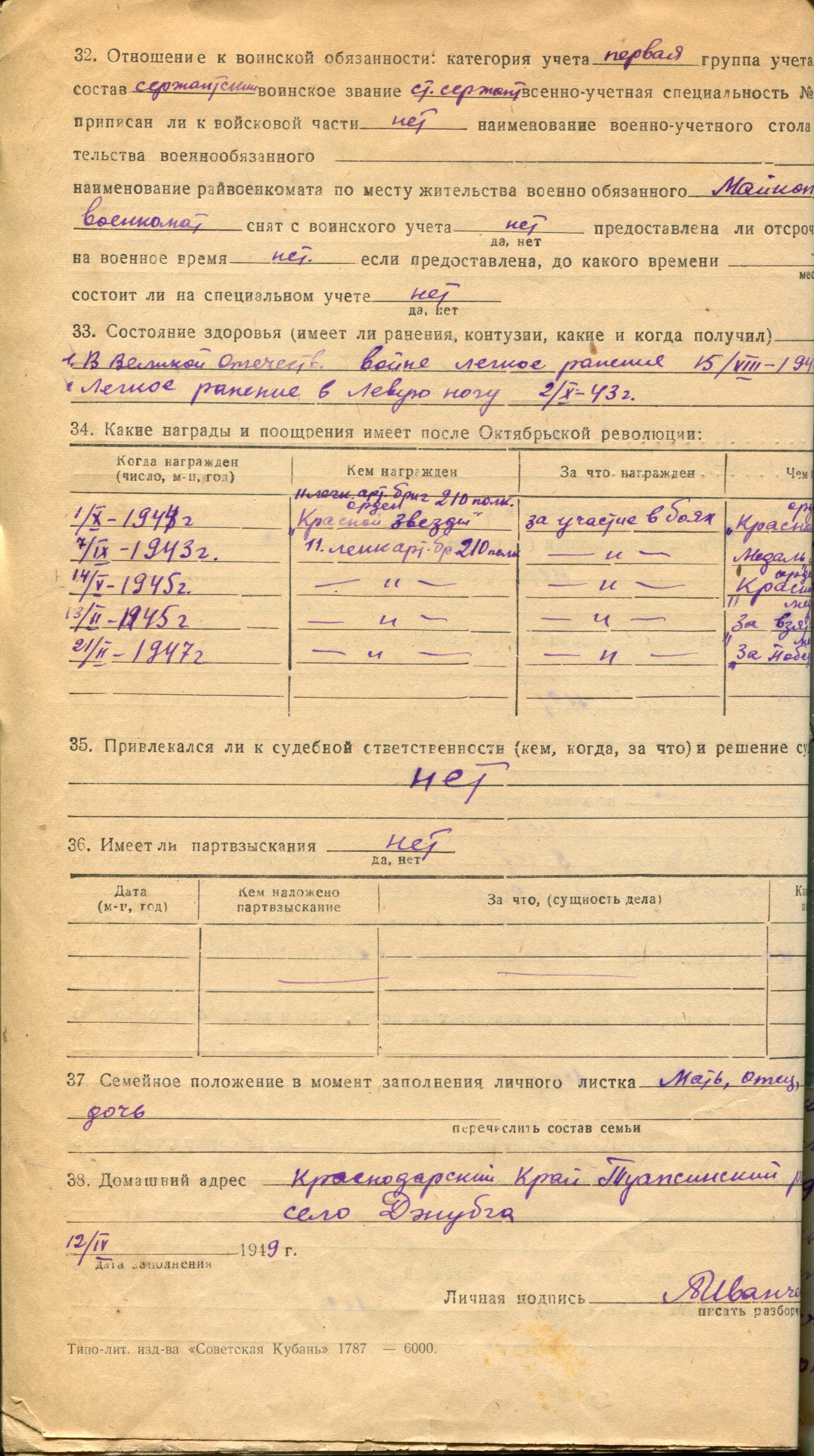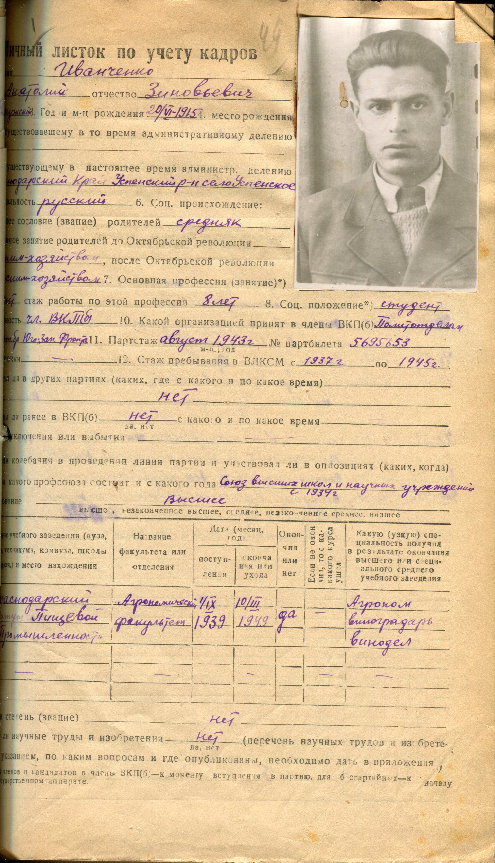 Иванченко А.З. Личный листок 1 (Ф. 312, Оп. 2-л, д. 15, л.л. 49)