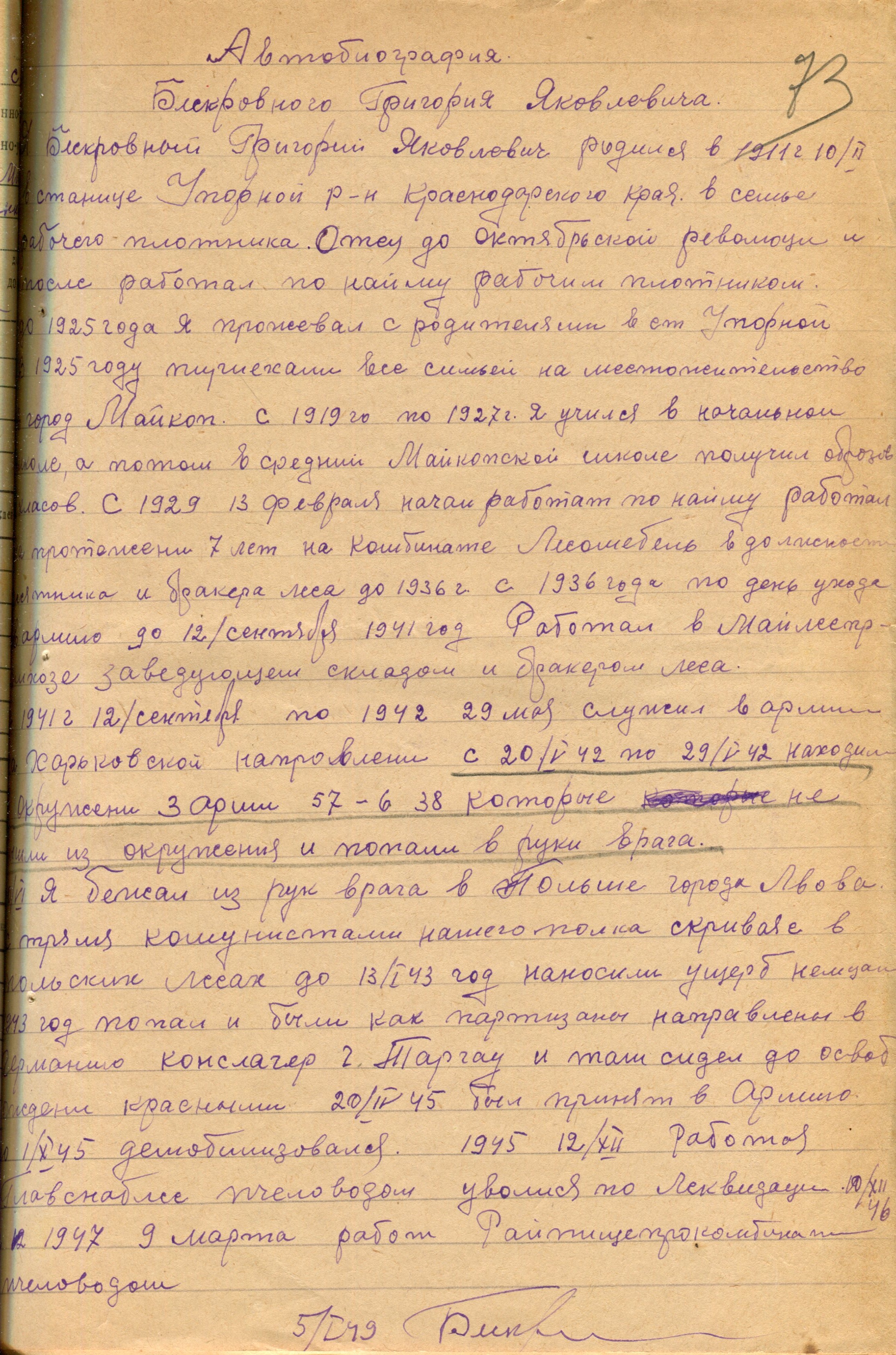Бескровный Г.Я. Автобиография (Ф. 346, Оп. 1-л, д. 26, л. 73)