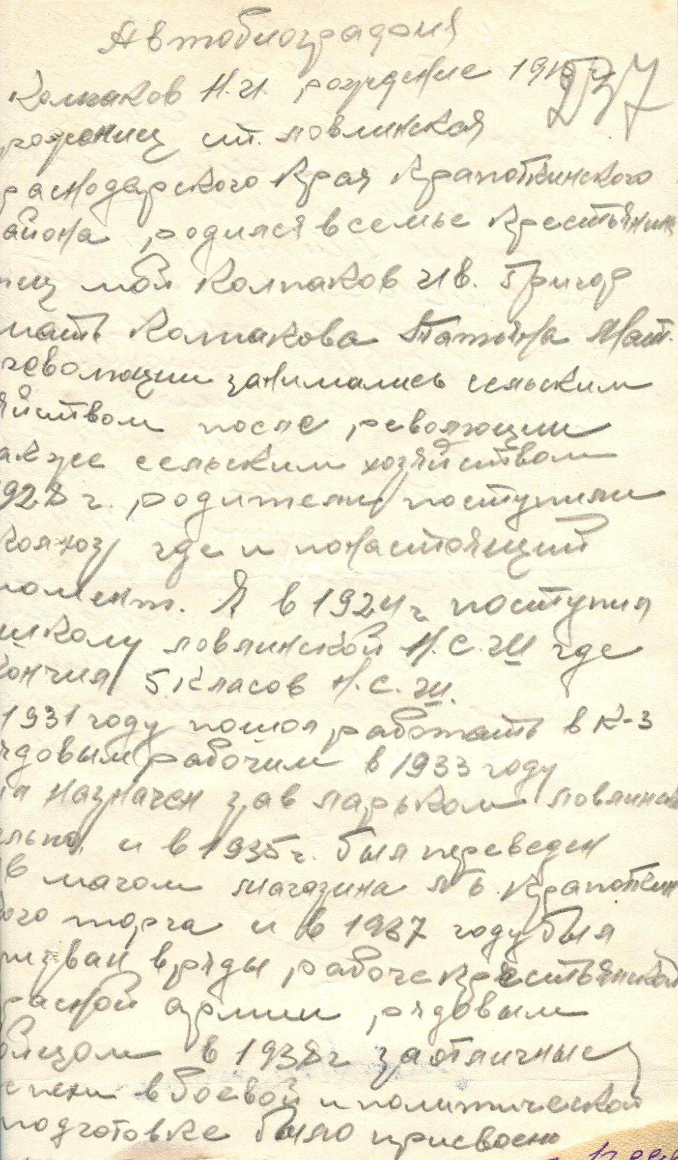 Колпаков Н.И. Автобиография 1 (Ф. 346, Оп. 1-л, д. 26, л. 237)