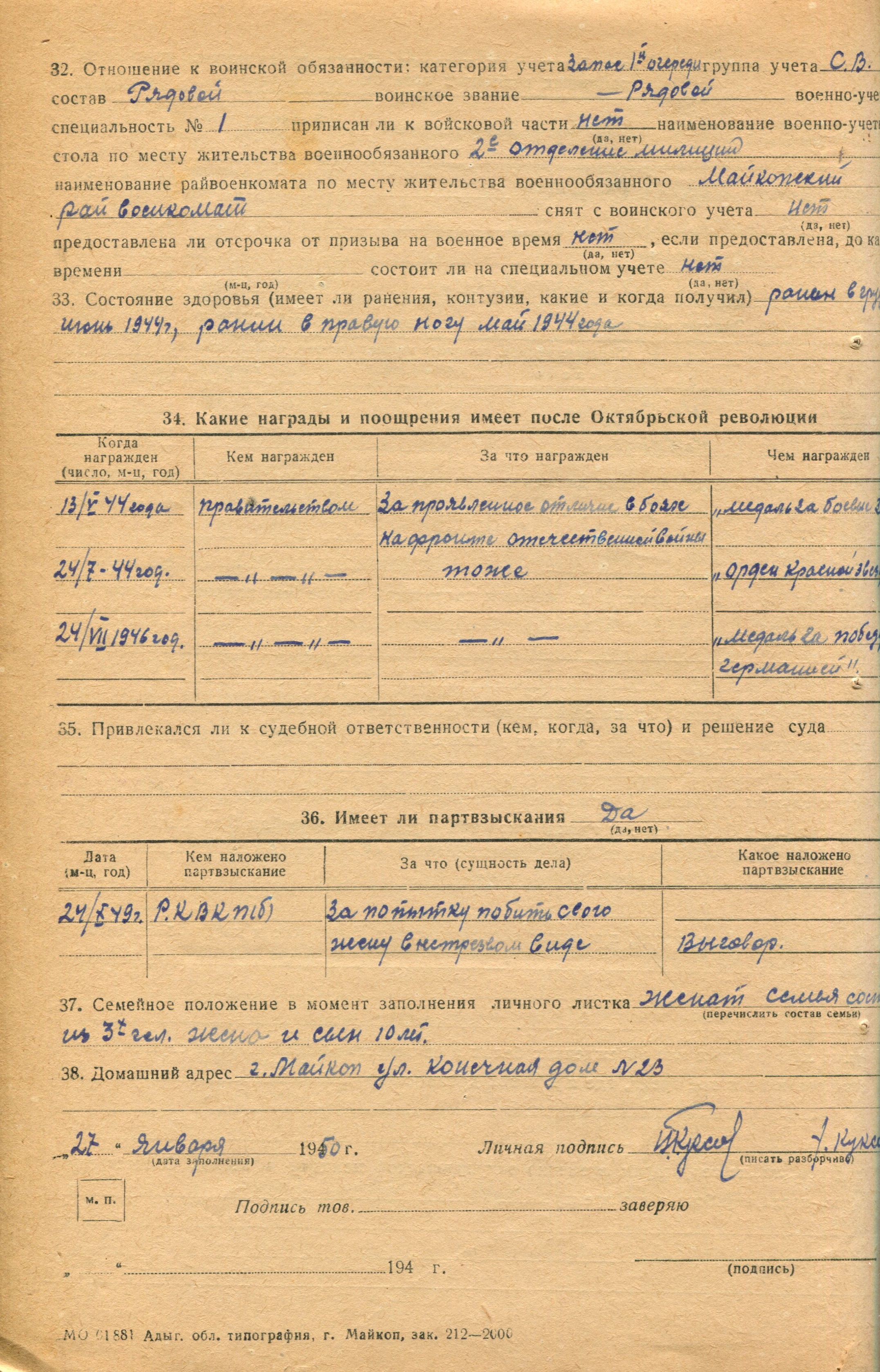 Кусков И.П. Личный листок 4 (Ф. 346, Оп. 1-л, д. 26, л. 215)