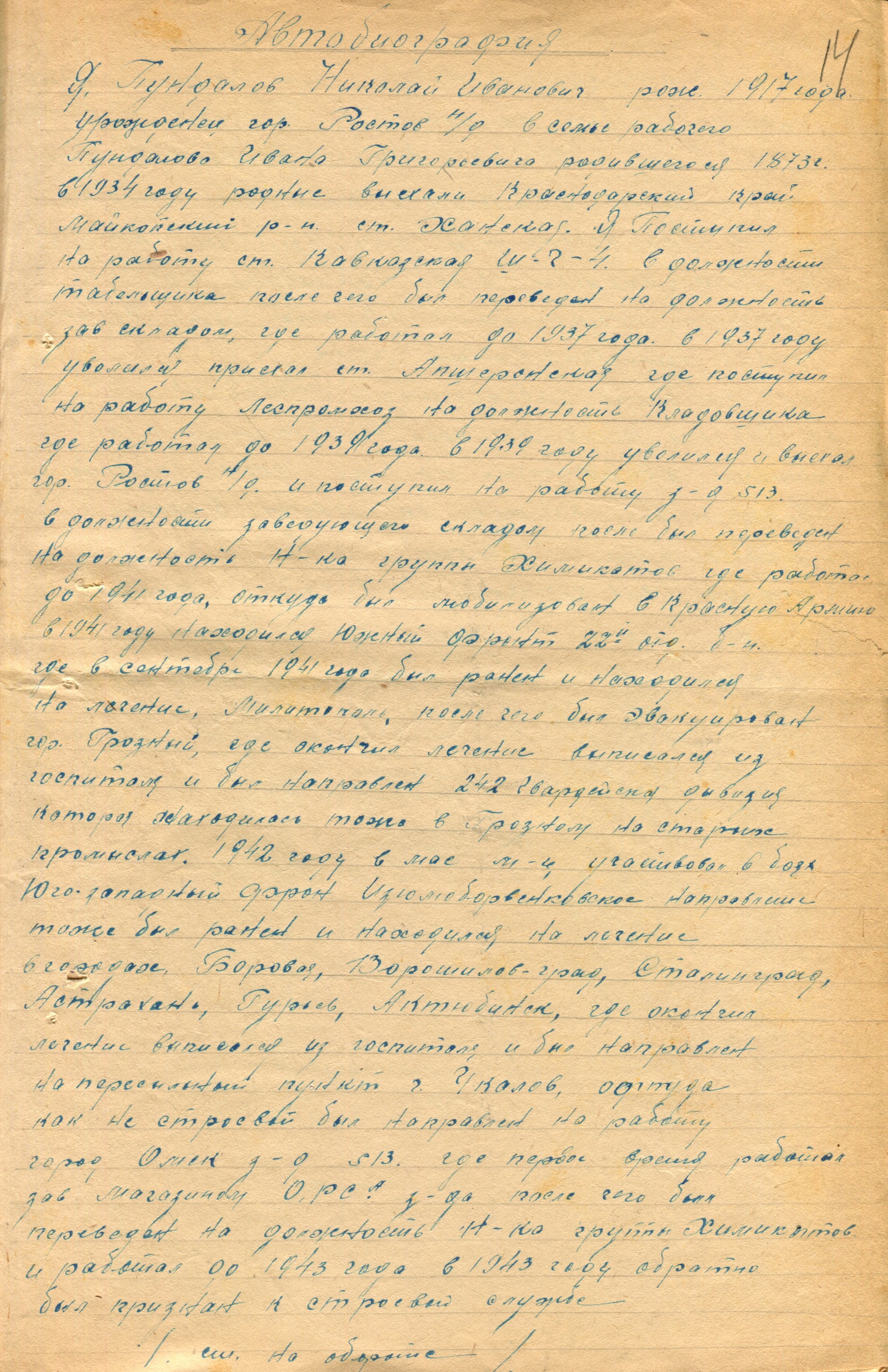 Пундалов Н.И. Автобиография 1 (Ф. 346, Оп. 1-л, д. 26, л. 14)