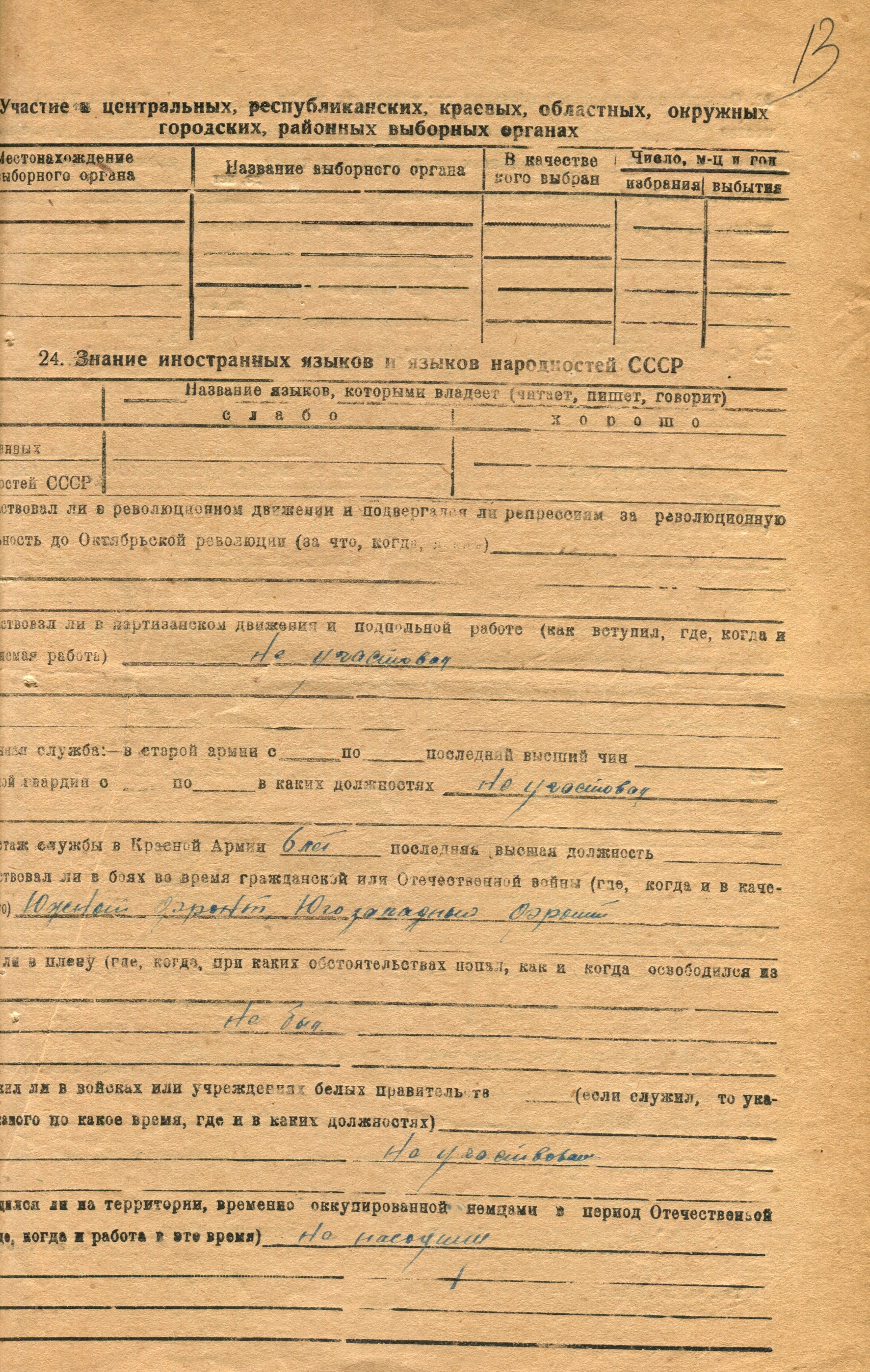 Пундалов Н.И. Личный листок 4 (Ф. 346, Оп. 1-л, д. 26, л. 13)
