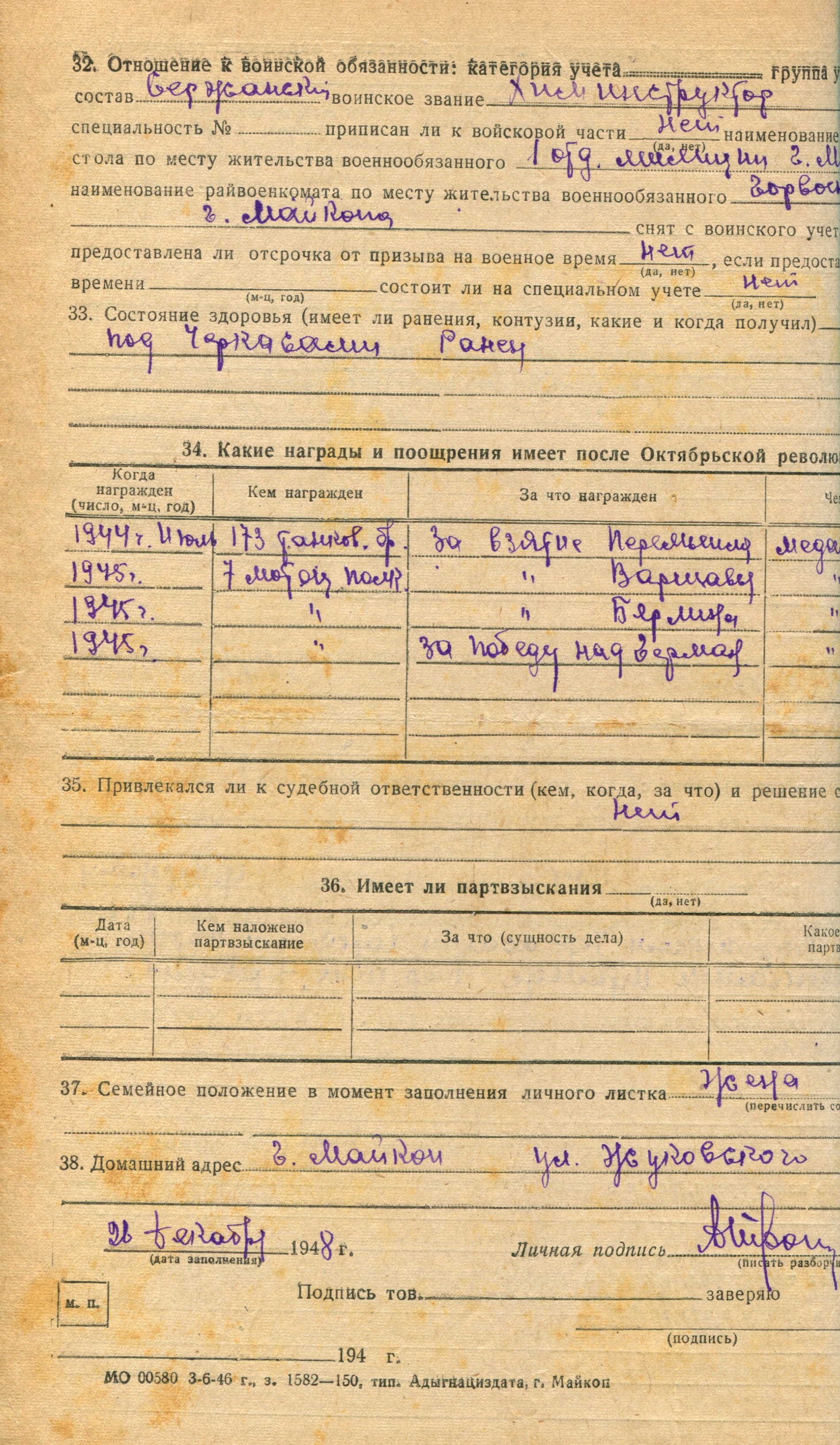 Троц Л.Д. Личный листок 4 (Ф. 346, Оп. 1-л, д. 26, л. 24)