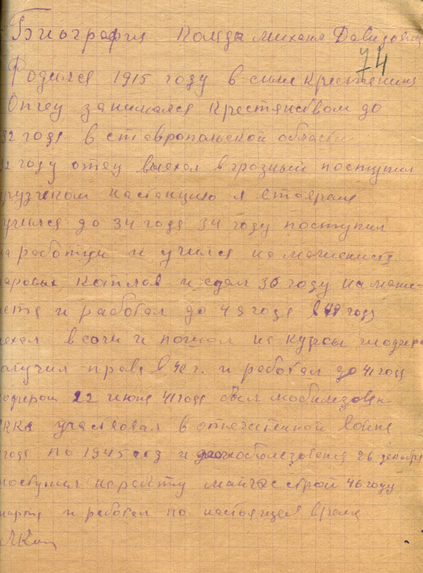 Коляда М. Д. Автобиография (Ф. 341, Оп. 1-л, д. 3, л. 74)