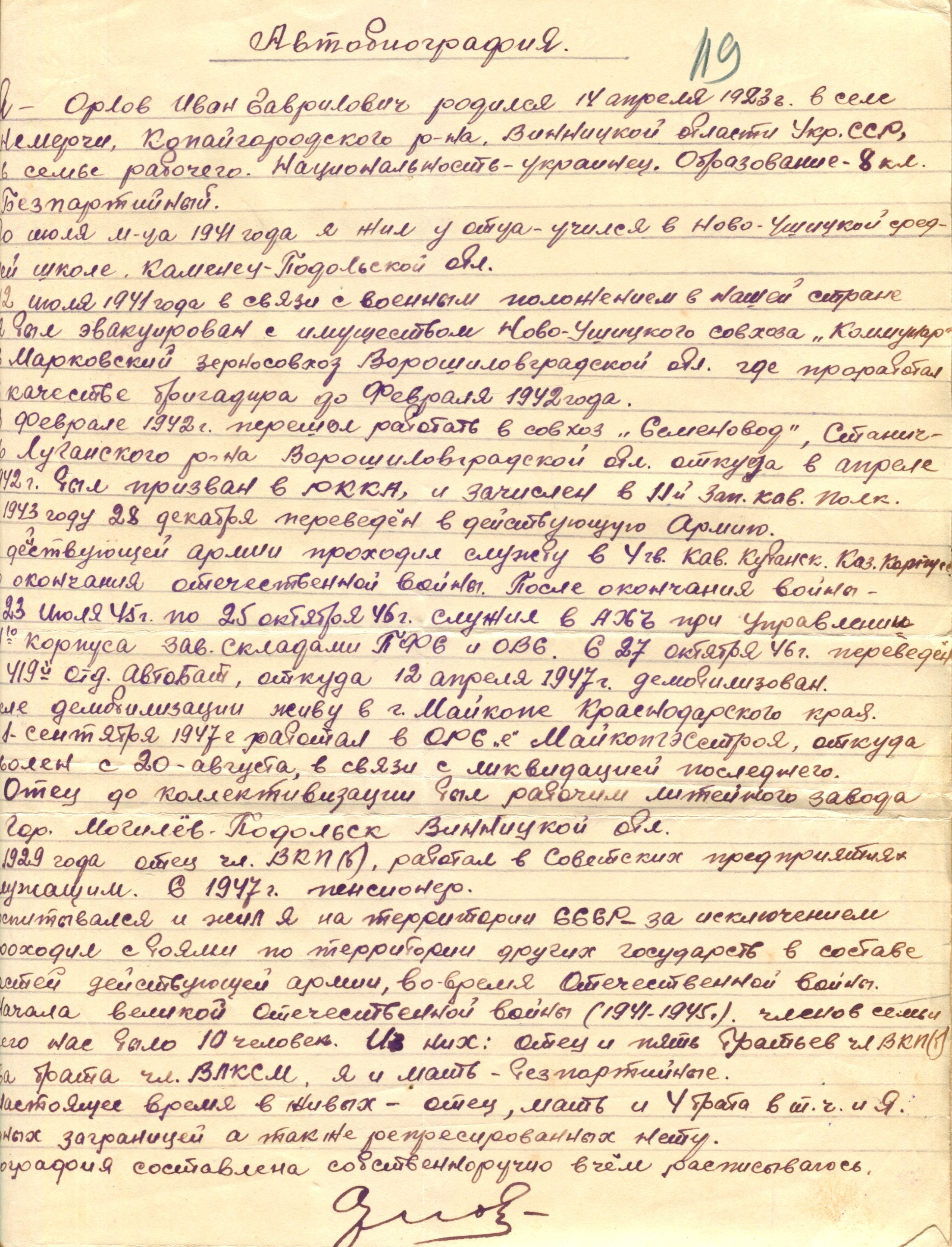 Орлов И.Г. Автобиография (Ф. 341, Оп. 1, д. 3, л. 119)
