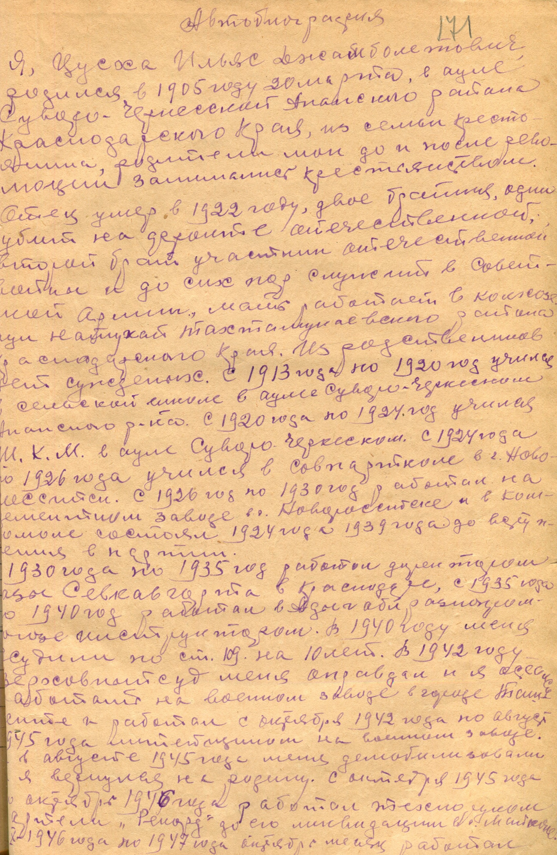 Цусха И. Д. Автобиография 1 (Ф. 341, Оп. 1, д. 3, л. 171)