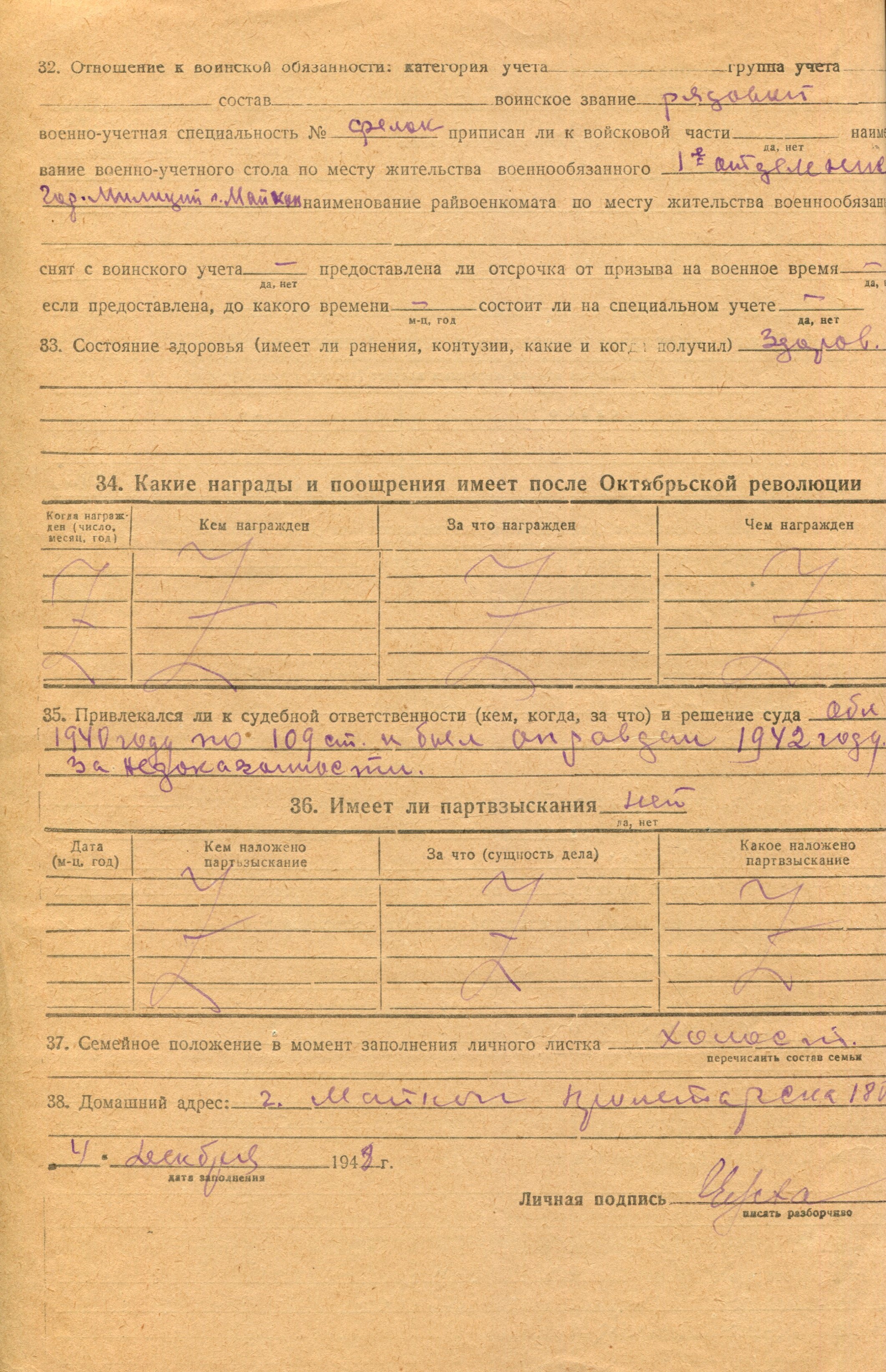 Цусха И. Д. Личный листок 2 (Ф. 341, Оп. 1, д. 3, л. 168)
