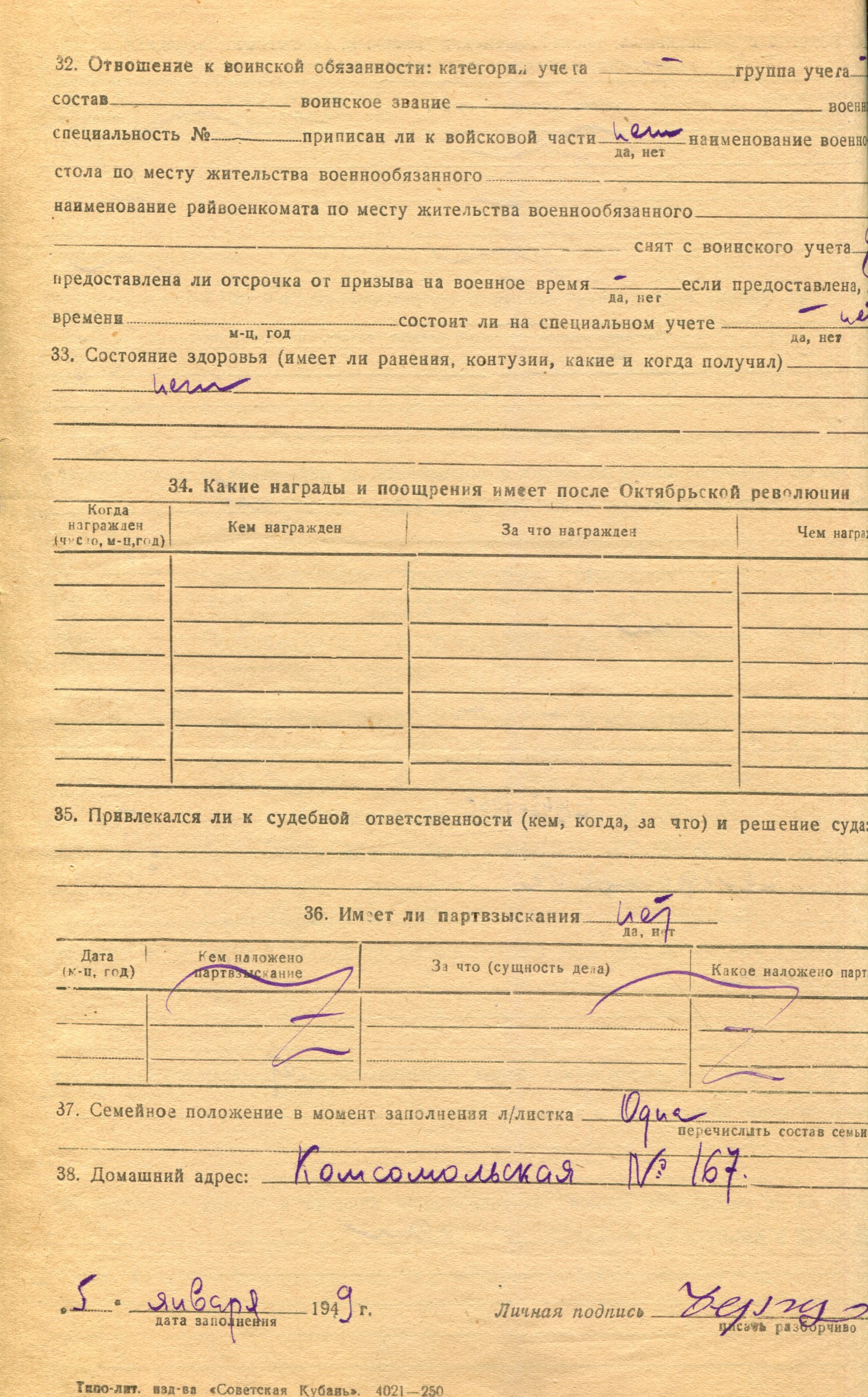 Чергенец Р. Л. Личный листок 4 (Ф. 341, Оп. 1-л, д. 3, л. 159)