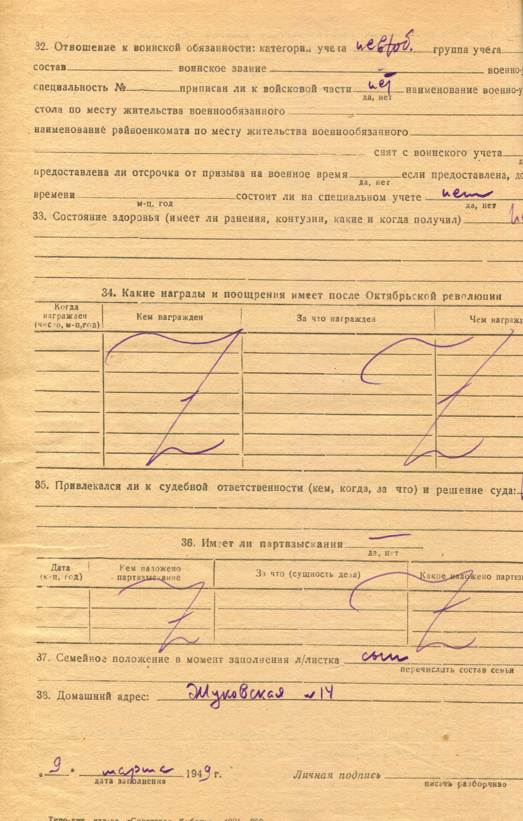 Шанина А.С. Личный листок 4 (Ф. 341, Оп. 1, д. 3, л. 173)