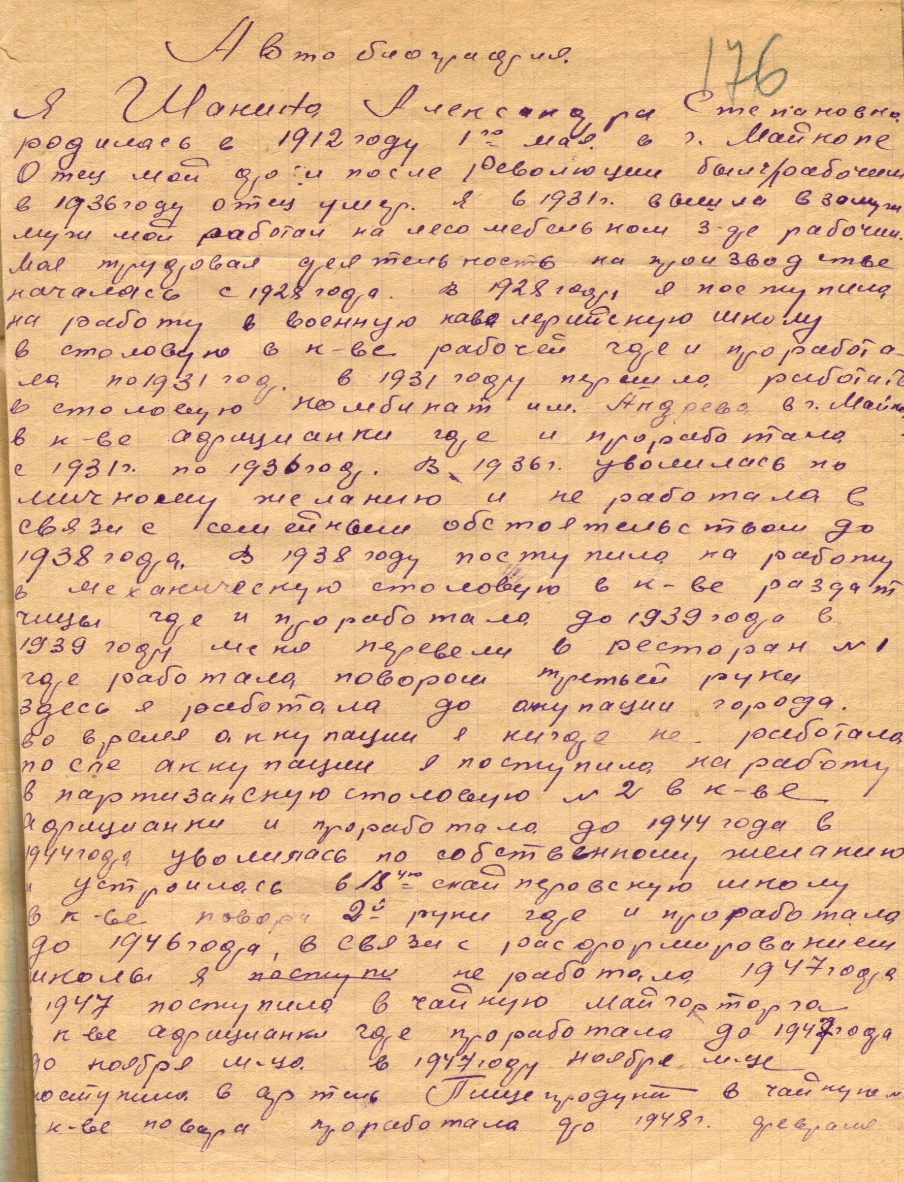 Шанина А.С. Автобиография 2 (Ф. 341, Оп. 1, д. 3, л. 176)