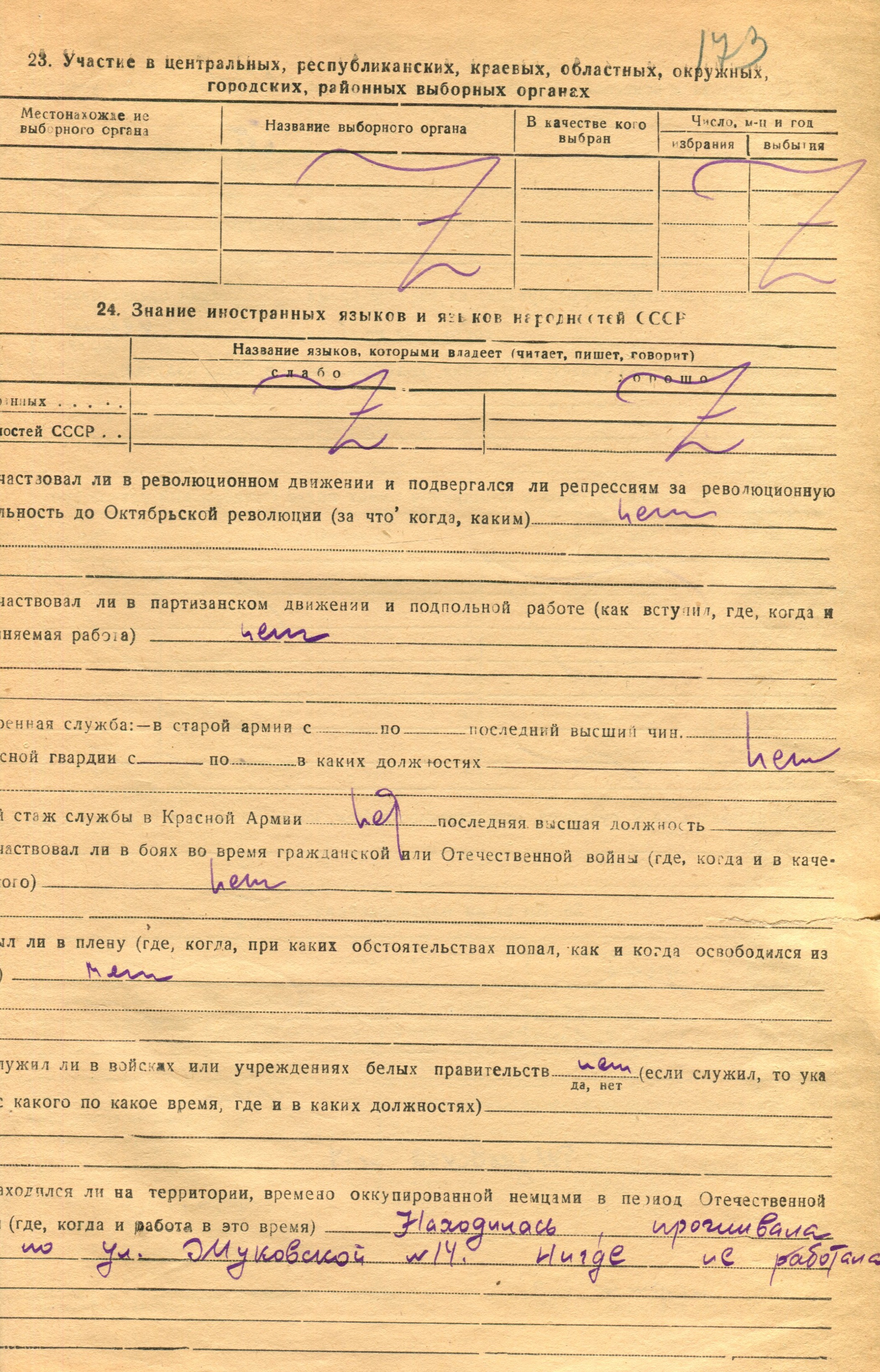 Шанина А.С. Личный листок 3 (Ф. 341, Оп. 1, д. 3, л. 173)