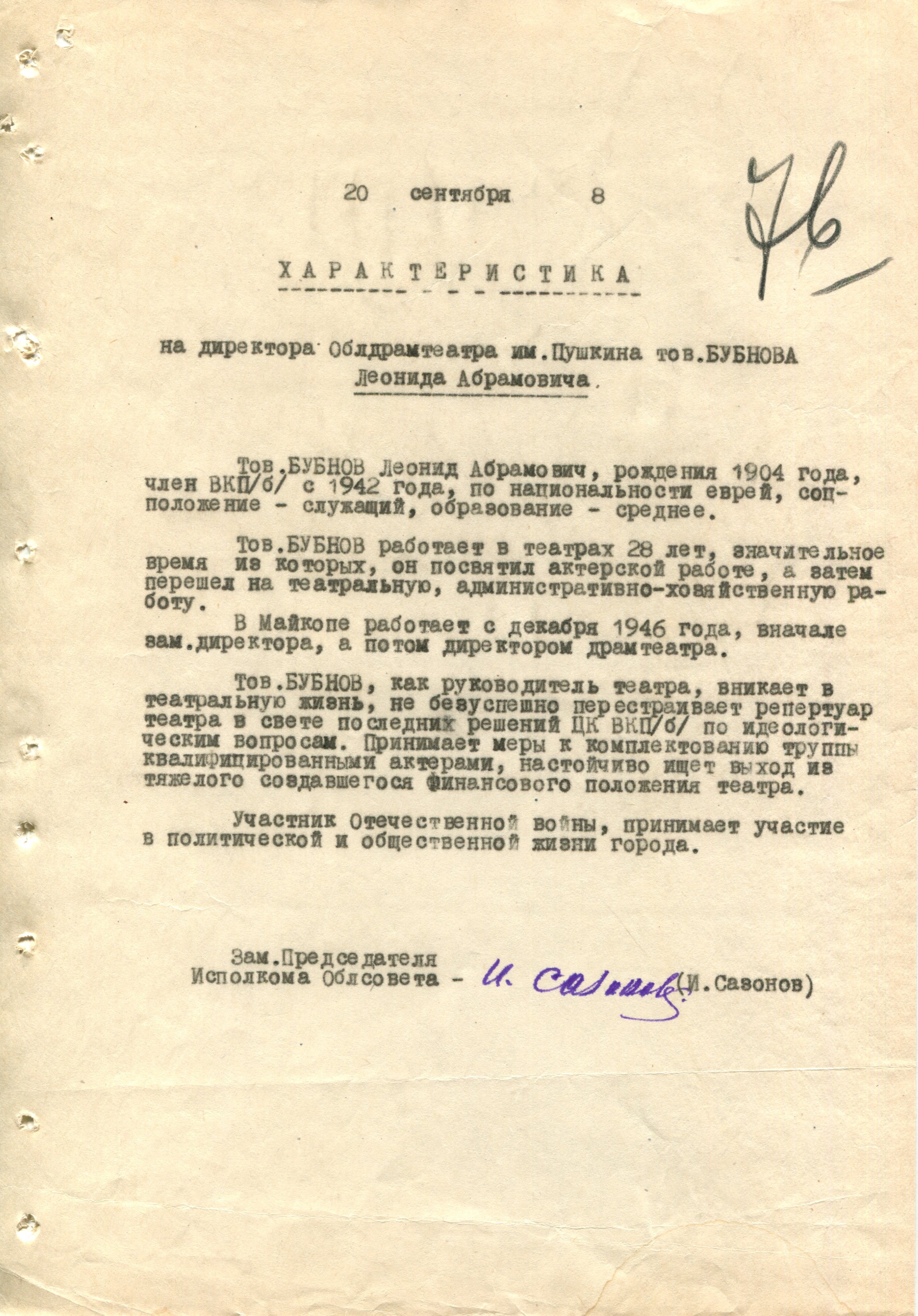 Глазунов Г.З. Характеристика (Ф. 305, Оп. 1-л, д. 29, л. 76)