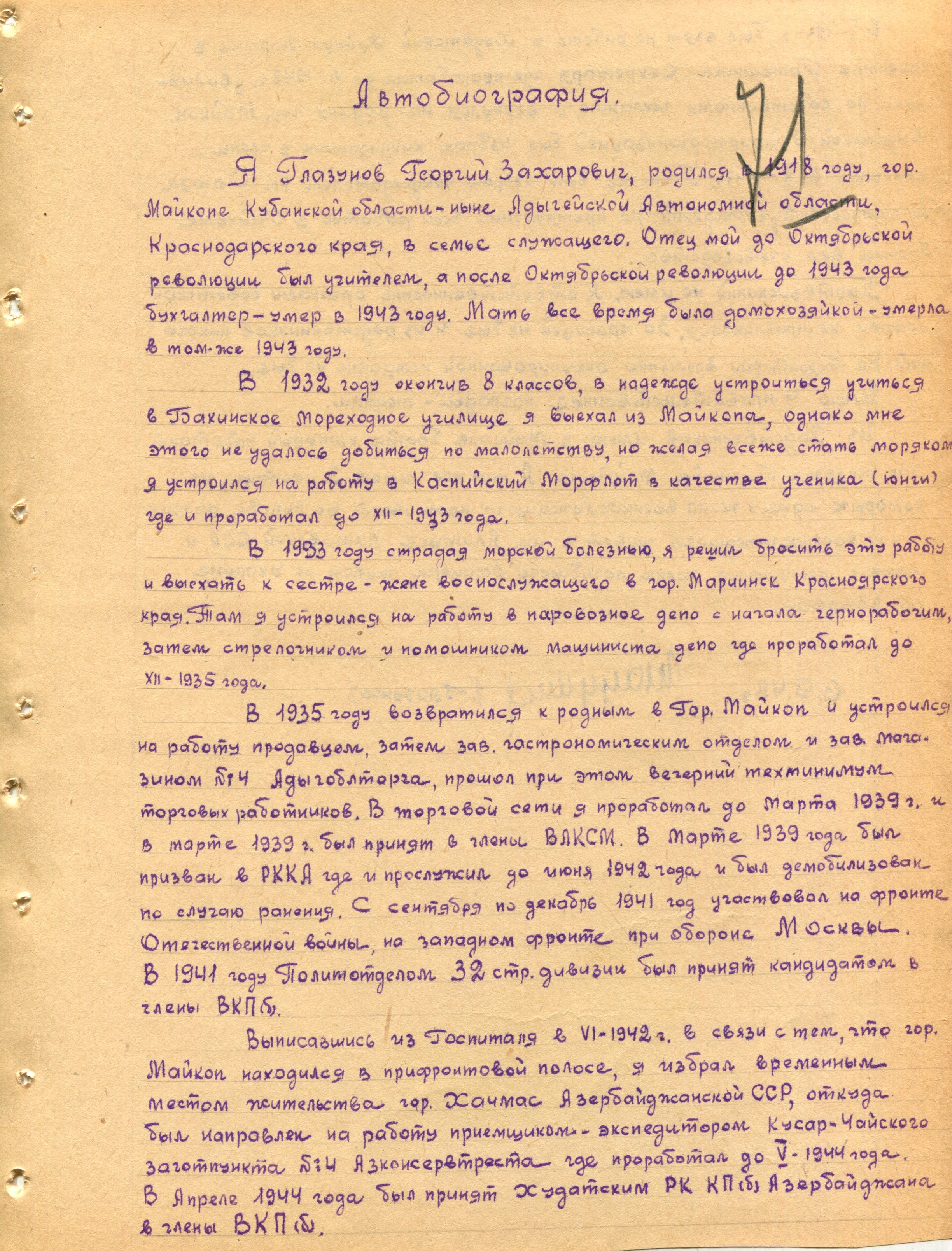 Глазунов Г.З. Автобиография 1 (Ф. 305, Оп. 1-л, д. 29, л. 71)