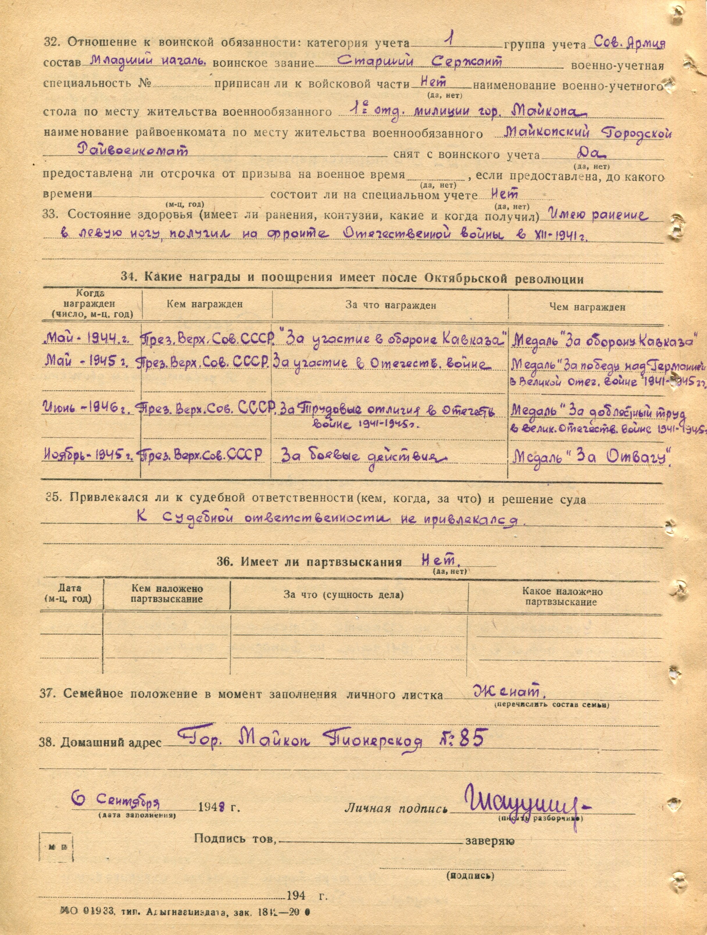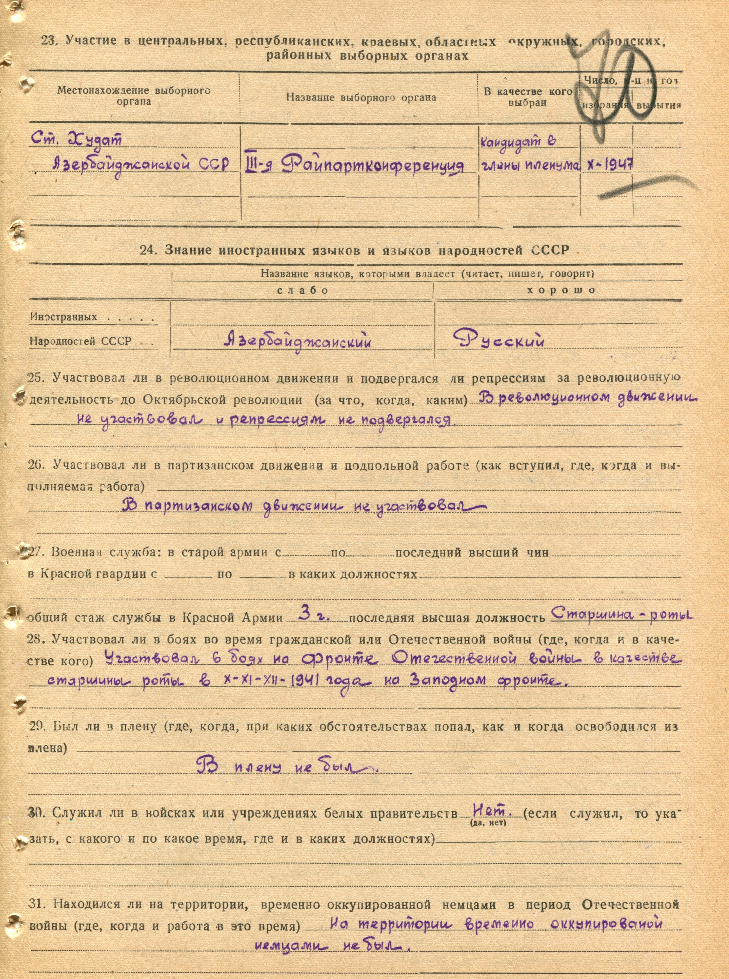 Глазунов Г.З. Личный листок 4 (Ф. 305, Оп. 1-л, д. 29, л. 70)