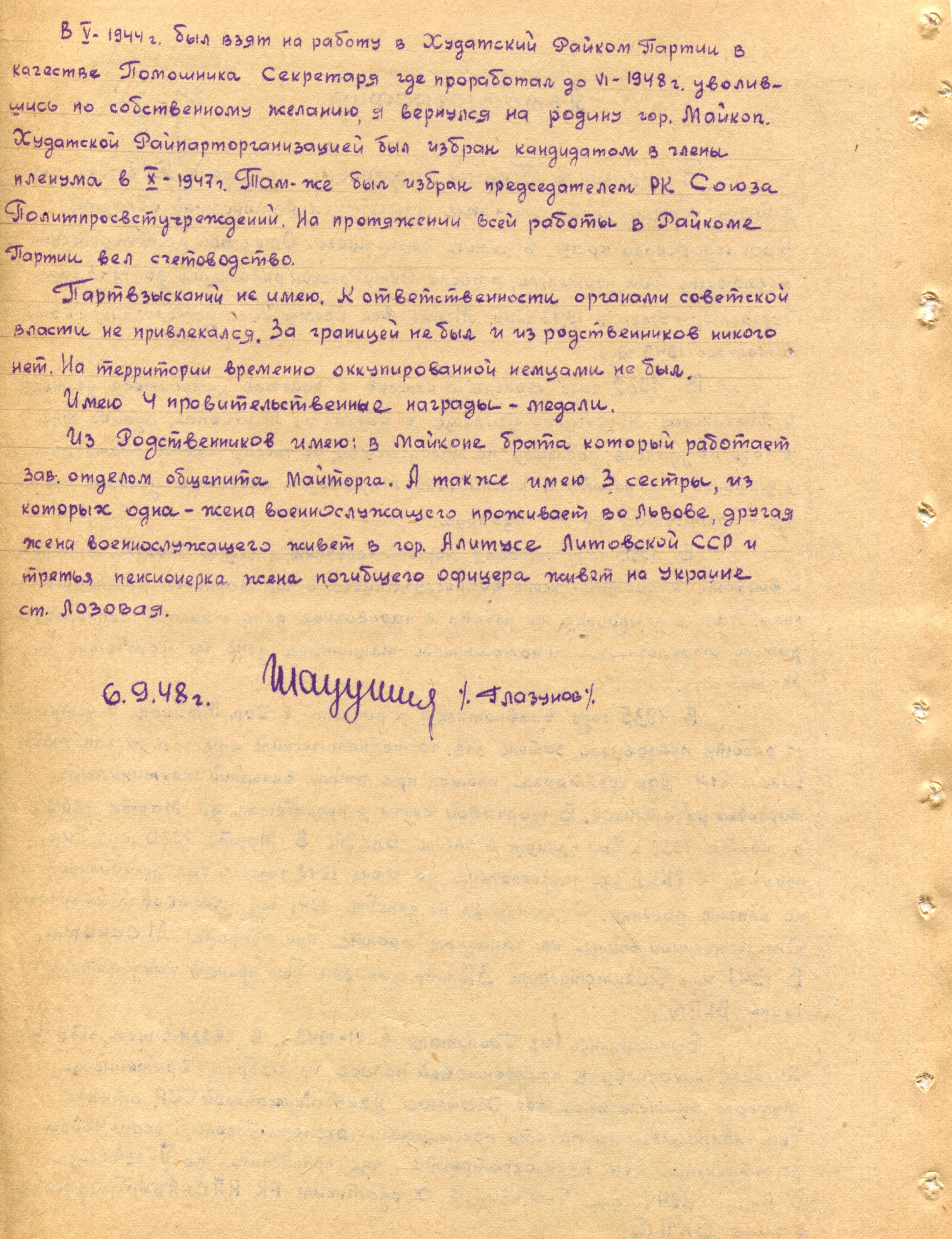 Глазунов Г.З. Автобиография 2 (Ф. 305, Оп. 1-л, д. 29, л. 71)
