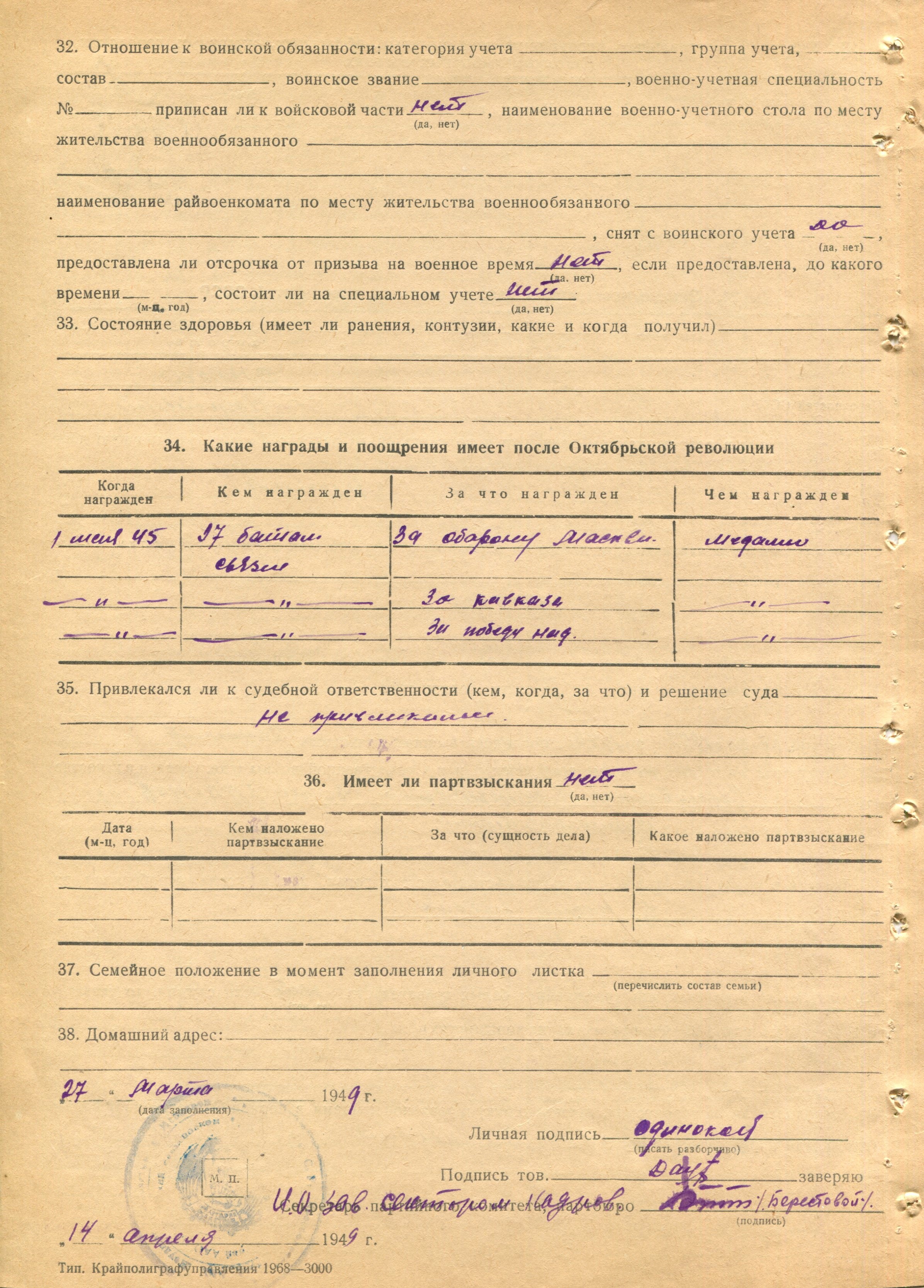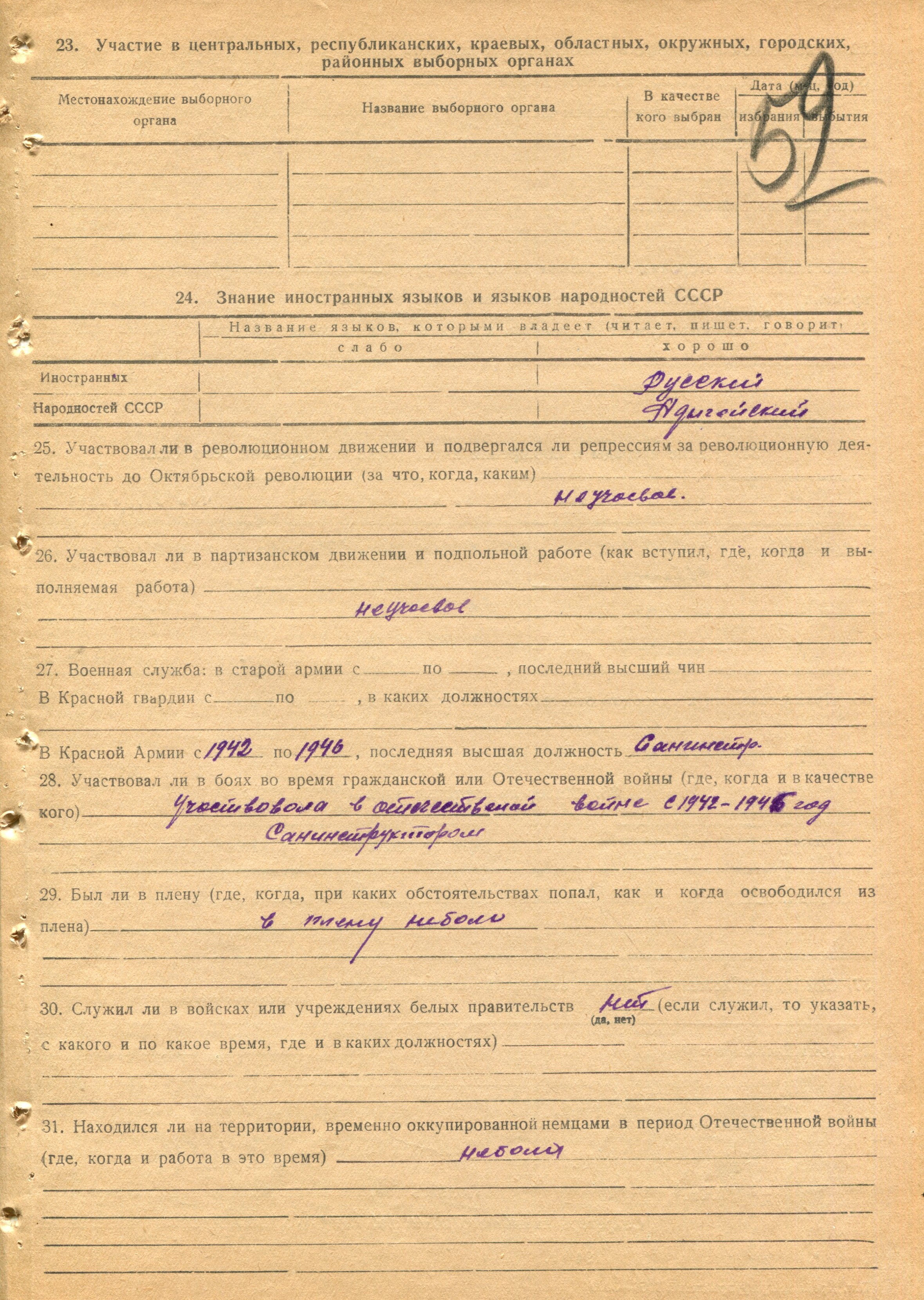 Даутова К. С. Личный листок 2 (Ф. 305, Оп. 1-л, д. 29, л. 58)