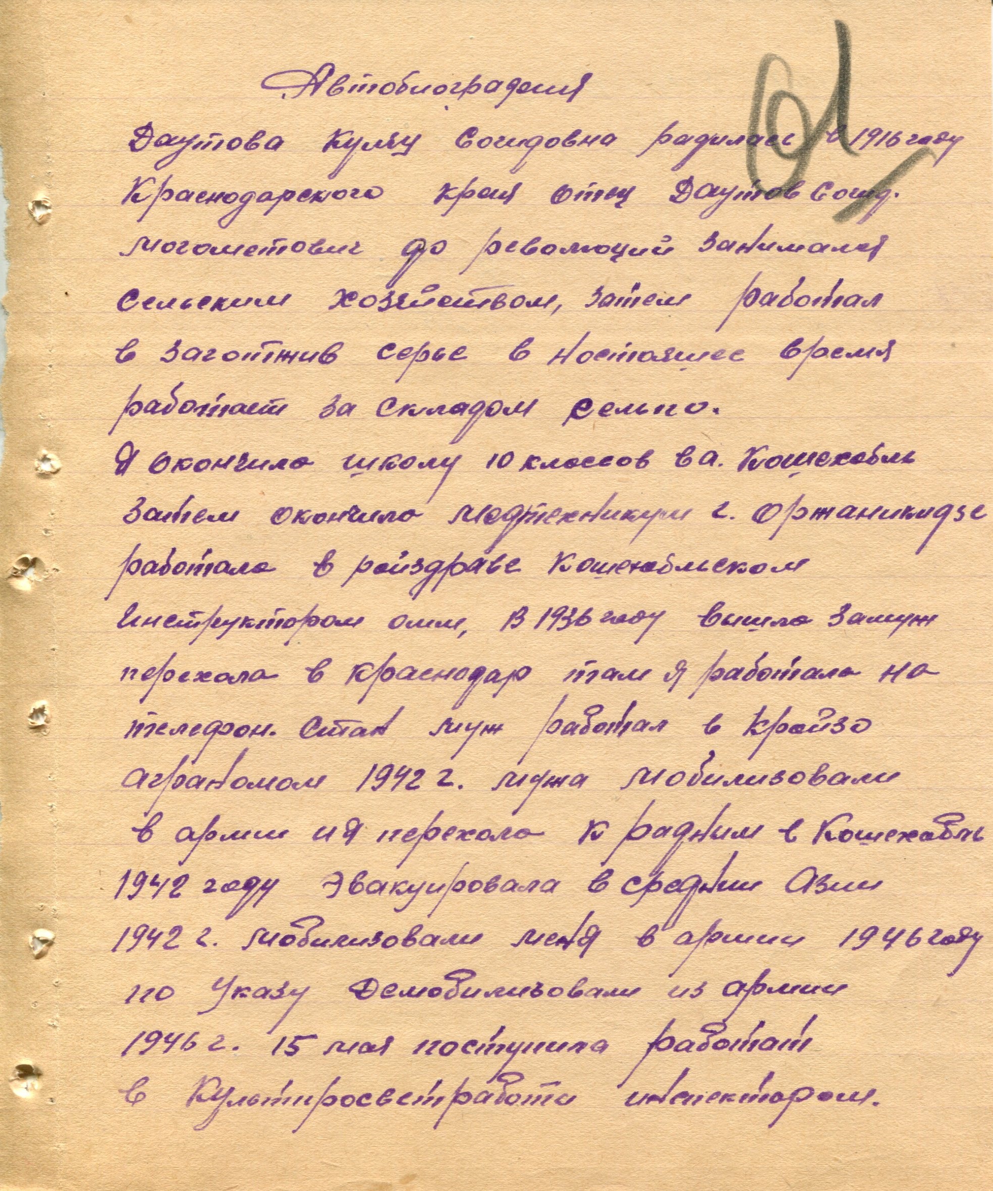 Даутова К. С. Автобиография 1 (Ф. 305, Оп. 1-л, д. 29, л. 61)