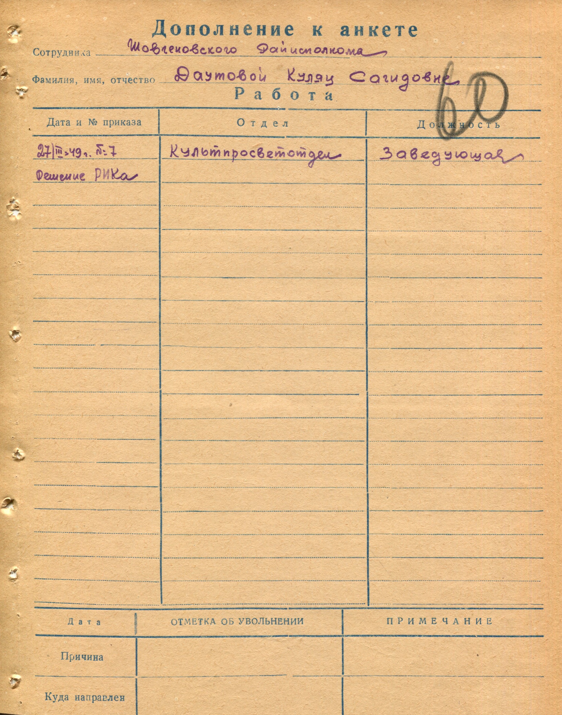 Даутова К. С. Дополнение к анкете (Ф. 305, Оп. 1-л, д. 29, л. 60)