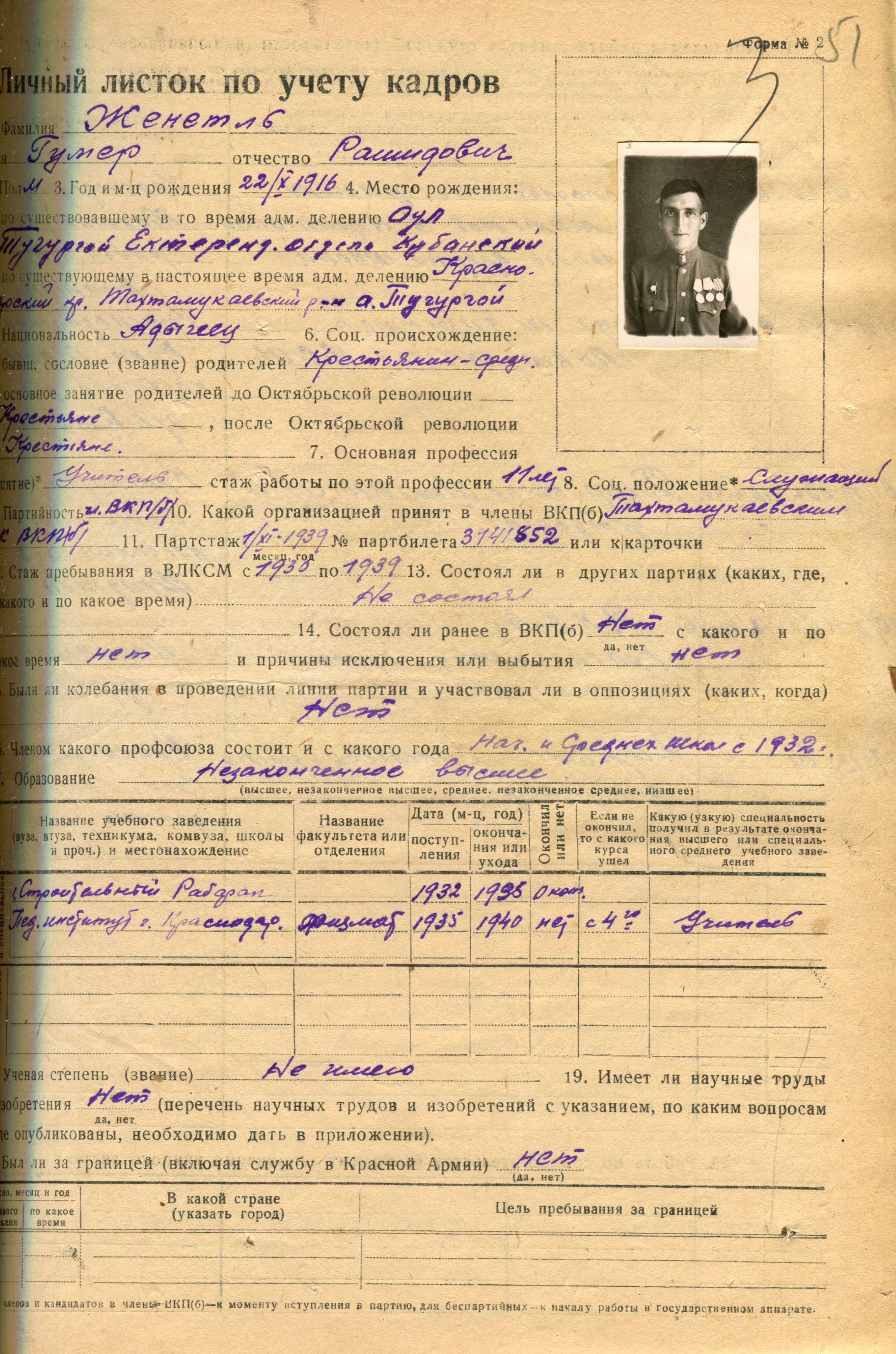 Женетль Гумер Рашидович (Ф. 305, Оп. 1-л, д. 38)