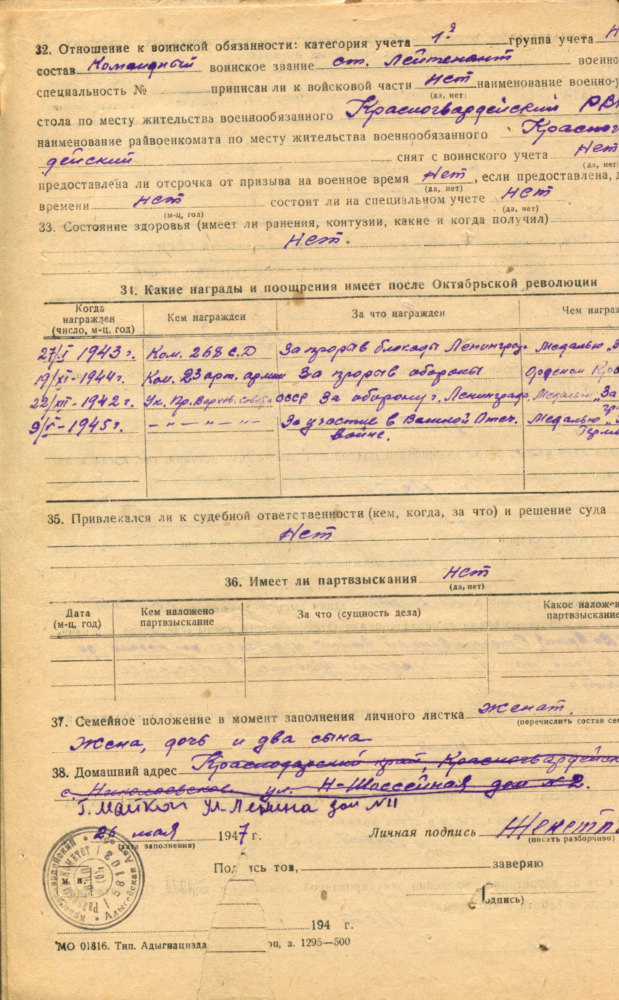 Женетль Г.Р. Личный листок 4 (Ф. 305, Оп. 1-л, д. 38, л. 52)