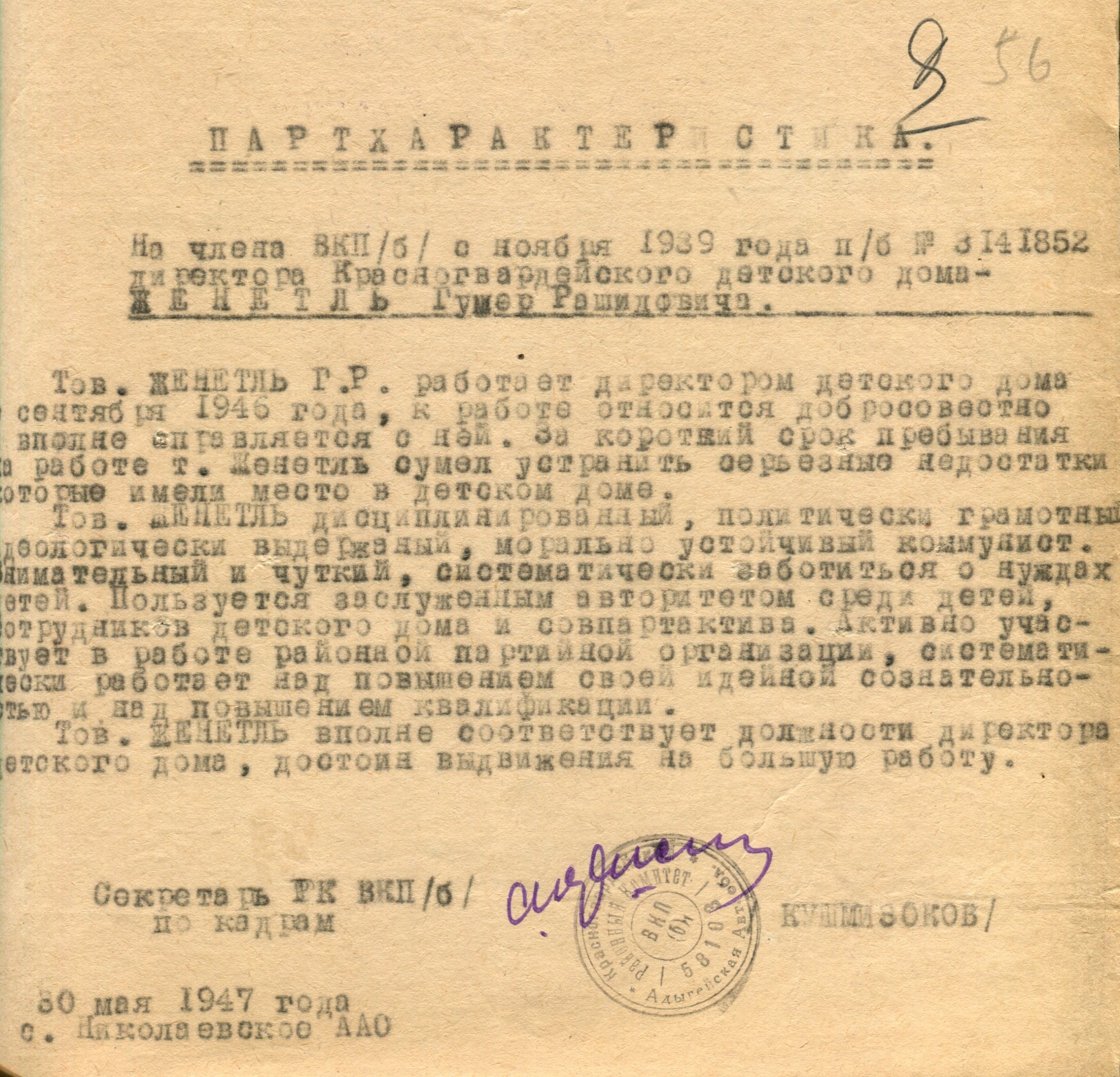 Женетль Г.Р. Характеристика (Ф. 305, Оп. 1-л, д. 38, л. 56)